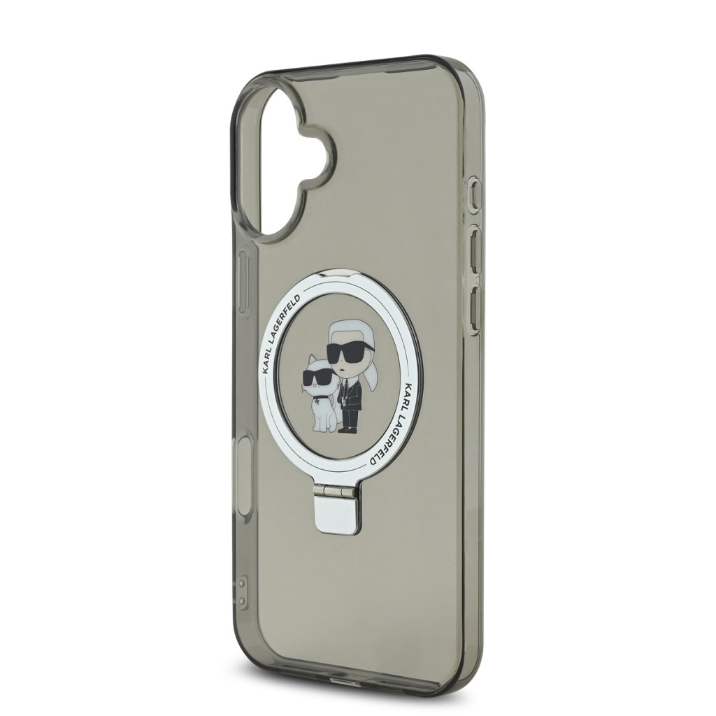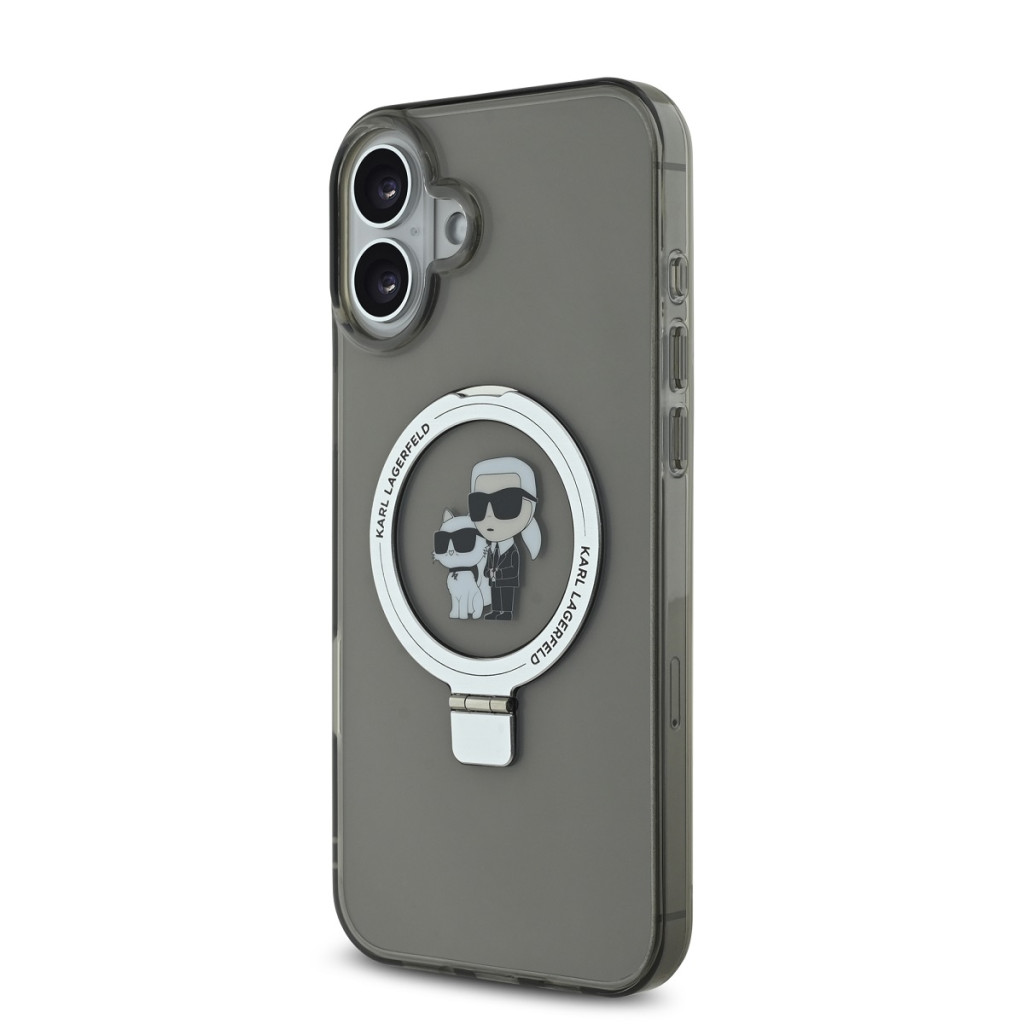 Karl Lagerfeld Ringstand Karl and Choupette MagSafe iPhone 16 Plus Magsafe kompatibilis hátlap, tok, fekete