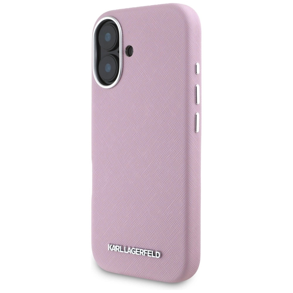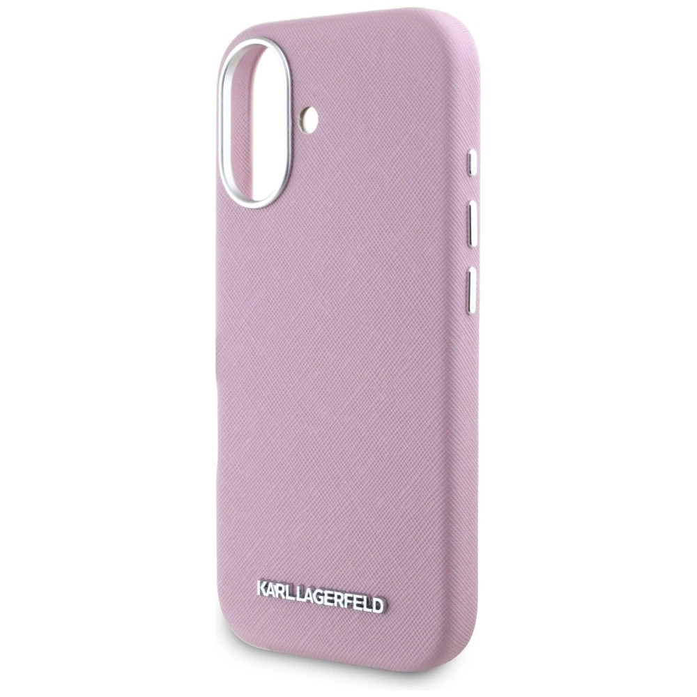 Karl Lagerfeld Saffiano Full Wrapped Elongated Metal Logo MagSafe iPhone 16 tok, rózsaszín