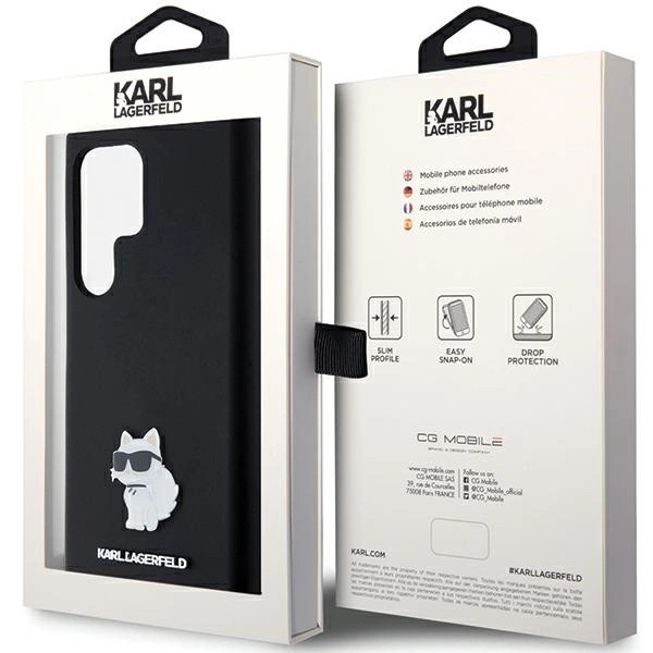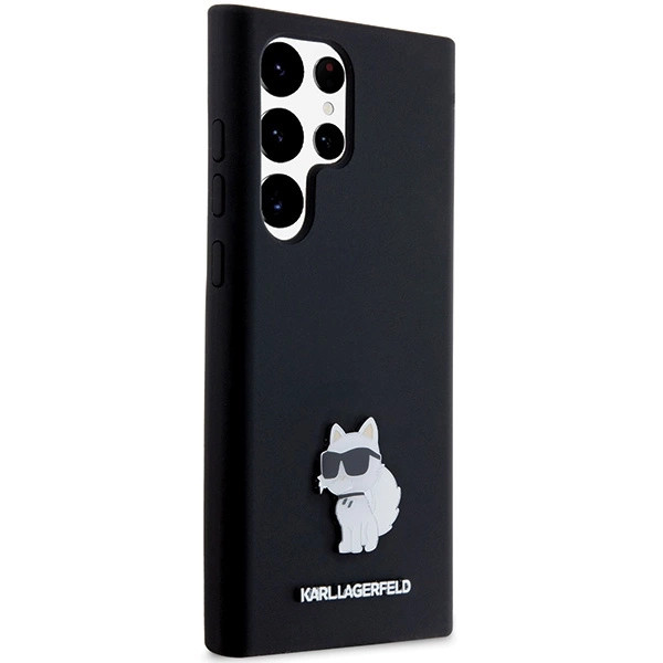 Karl Lagerfeld Silicone Choupette Metal Pin case for Samsung Galaxy S23 Ultra tok, fekete