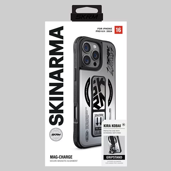 Kira Kobai iPhone 16 Pro, Max 6.9" Magnetic Charging Grip Stand chrome tok, ezüst