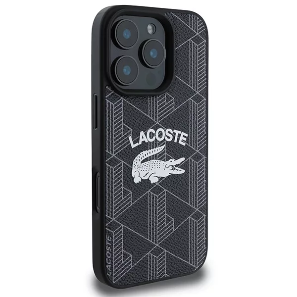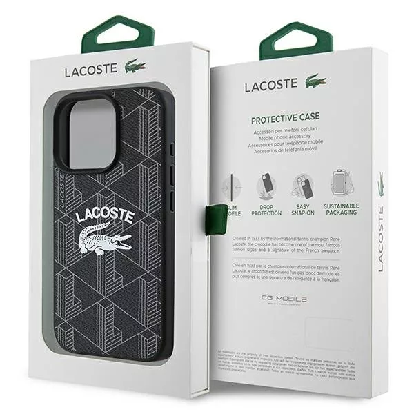 Lacoste LCHMP16LPIGK iPhone 16 Pro 6.3" tok, fekete Monogram Vintage Logo MagSafe