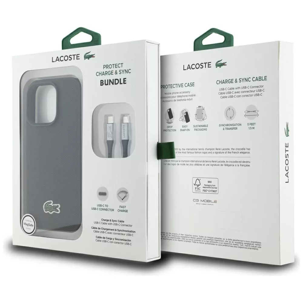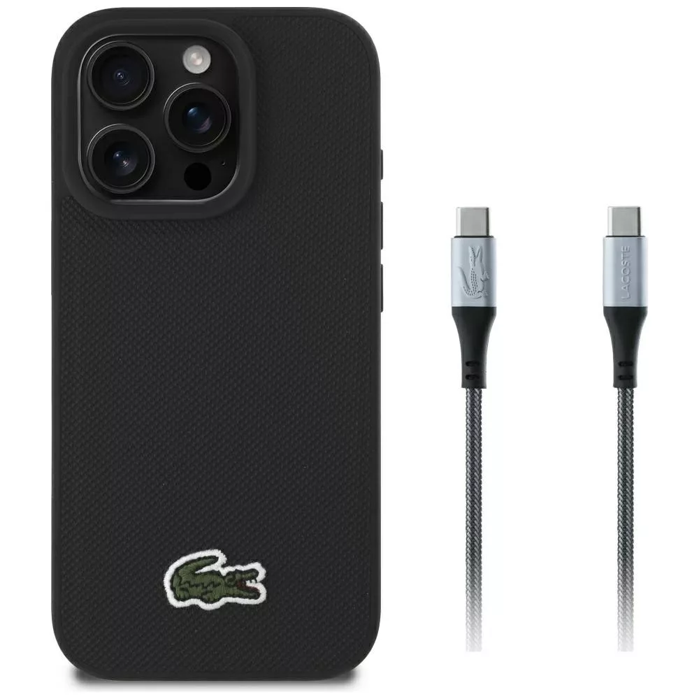 Lacoste Set 2in1 tok + USB-C kábe Iconic Petit Pique Woven MagSafe iPhone 16 Pro tok, fekete