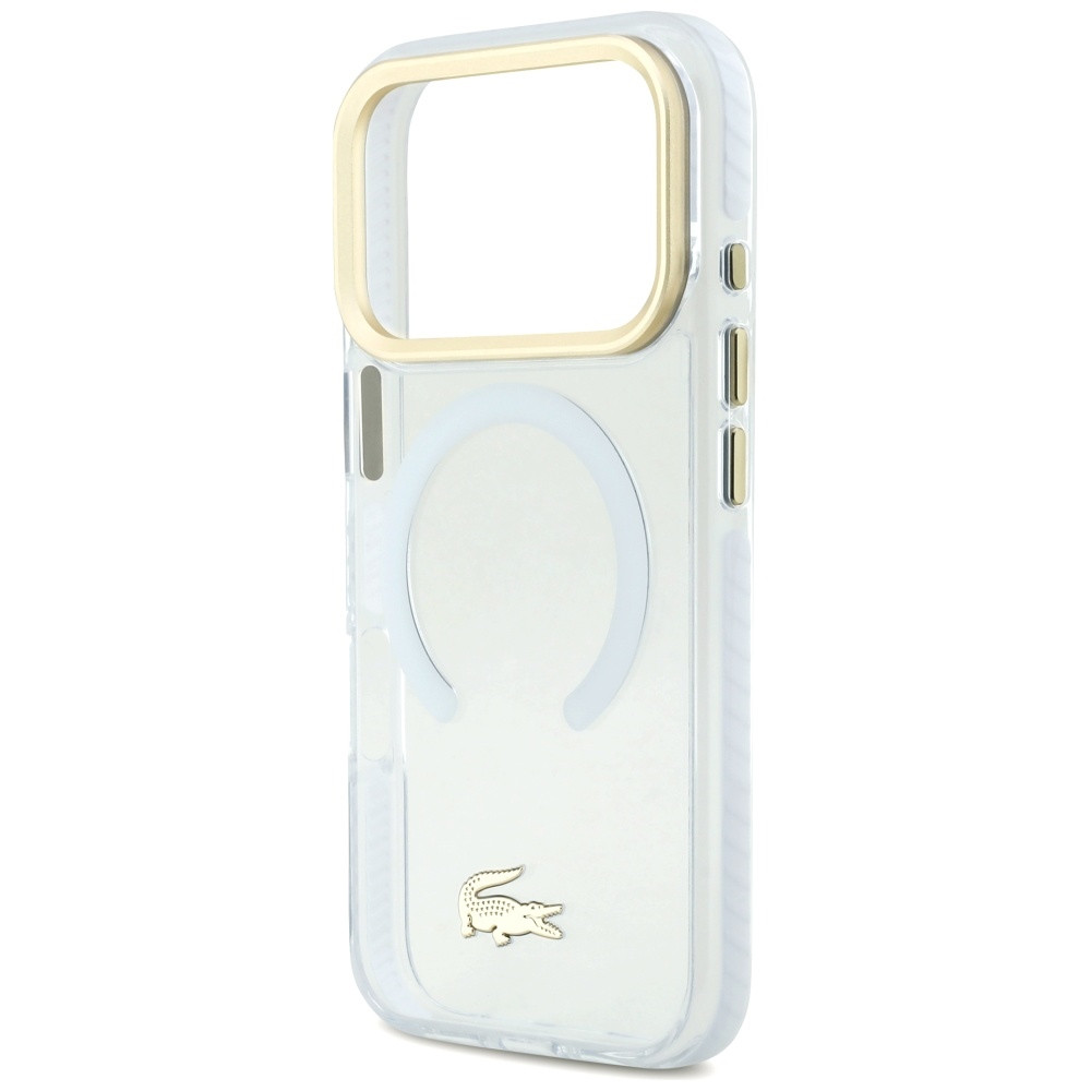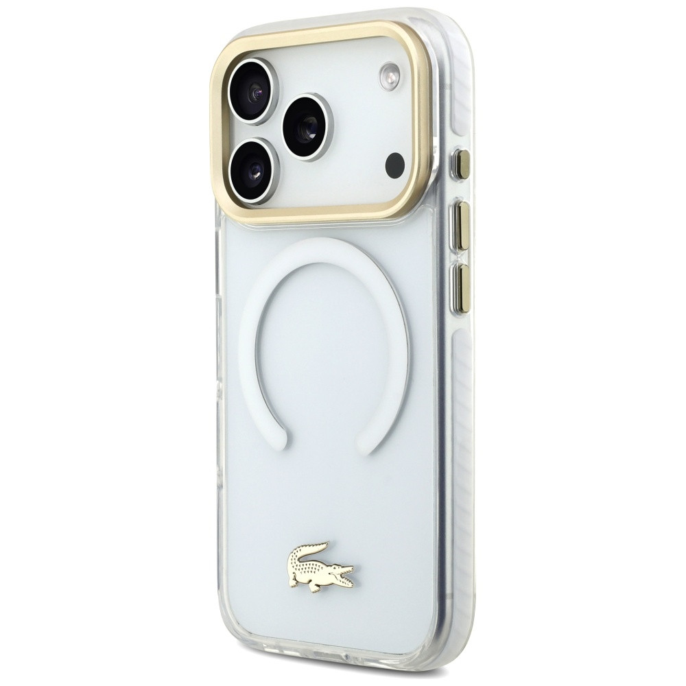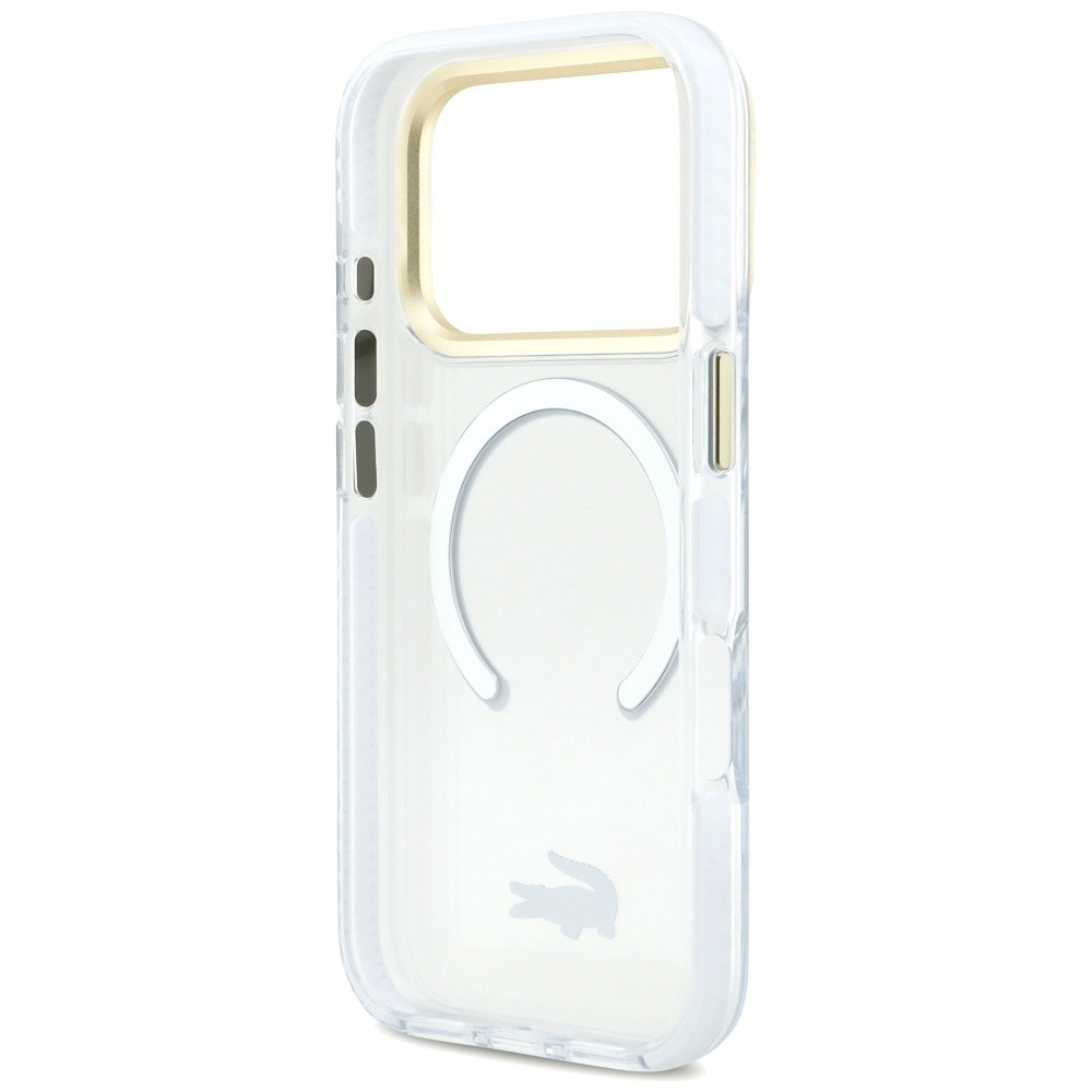 Lacoste Shockproof Frosted Case Gold Logo MagSafe Case iPhone 17 Pro tok, átlátszó-arany