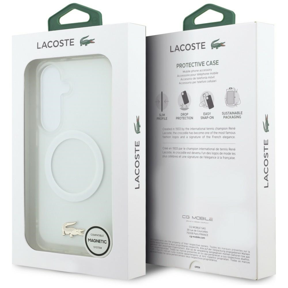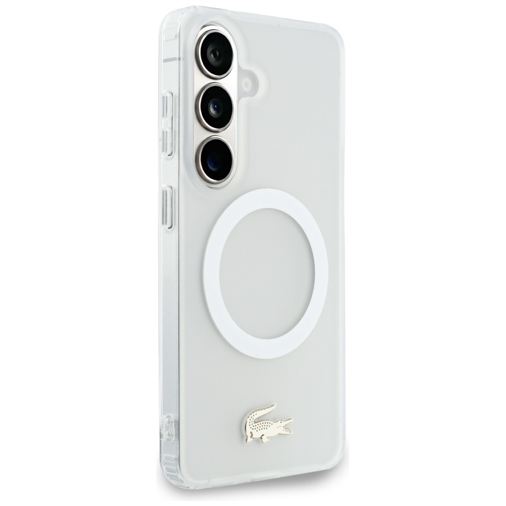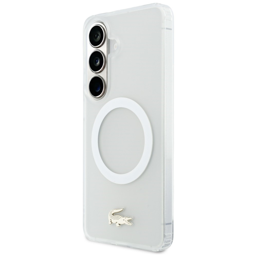 Lacoste Shockproof Frosted tok, arany Logo MagSafe Samsung Galaxy S26 tok, fehér