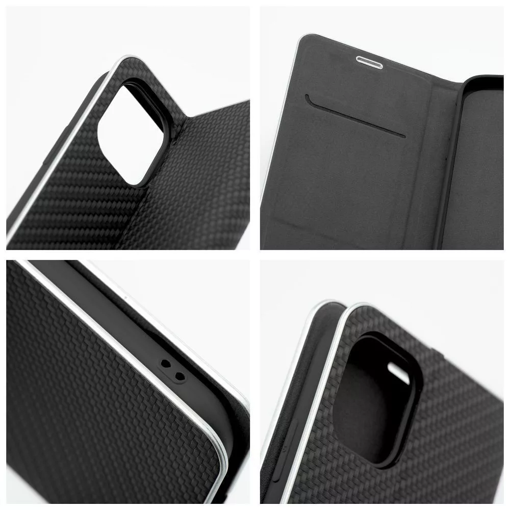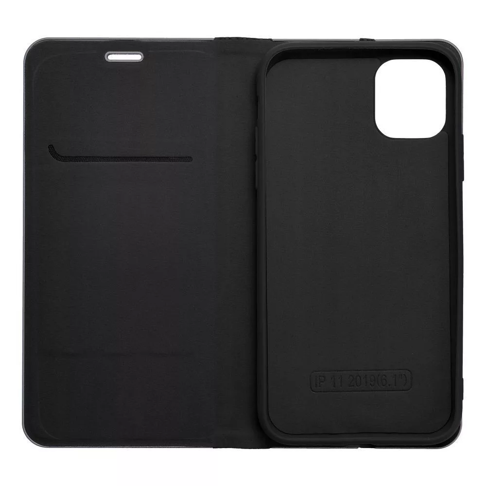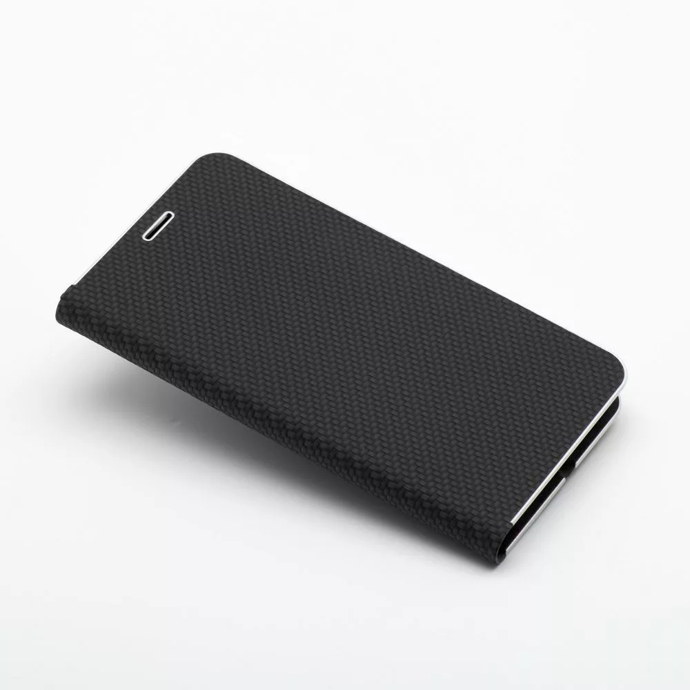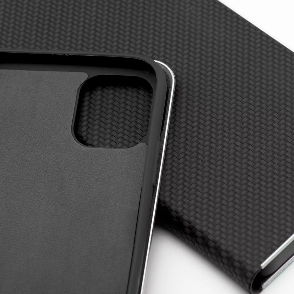 Elegáns tok fémkerettel a telefon fokozott védelme érdekében. A vonzó textúra és a kellemes tapintású anyag stílusos tokot alkot, amely kiemeli a készülék modern dizájnját. Apuha velúr anyag a belsejében és a tartó részen mindkét oldalról védetté teszi a készüléket a sérülésektől és karcolásoktól. A fogantyú rugalmas szilikonból készült és kivágásokkal ellátott. A széleken található alumínium keret erősebbé teszi a tokot és még jobban védi a készüléket. A fém és az eredeti anyag kombinálása egyedi és modern kompozíciót hoz létre, amelynek köszönhetően a készülék stílusosnak és elegánsnak mutatkozik. A tok egy kis zsebbel is rendelkezik a praktikus dokumentumok vagy bankjegyek számára. A tok vízszintes alapot tartalmaz a filmek vagy fényképek megtekintéséhez. Egy erős mágnes biztosítja a tok könnyű zárását és nyitását, és megakadályozza a véletlen kinyitást.