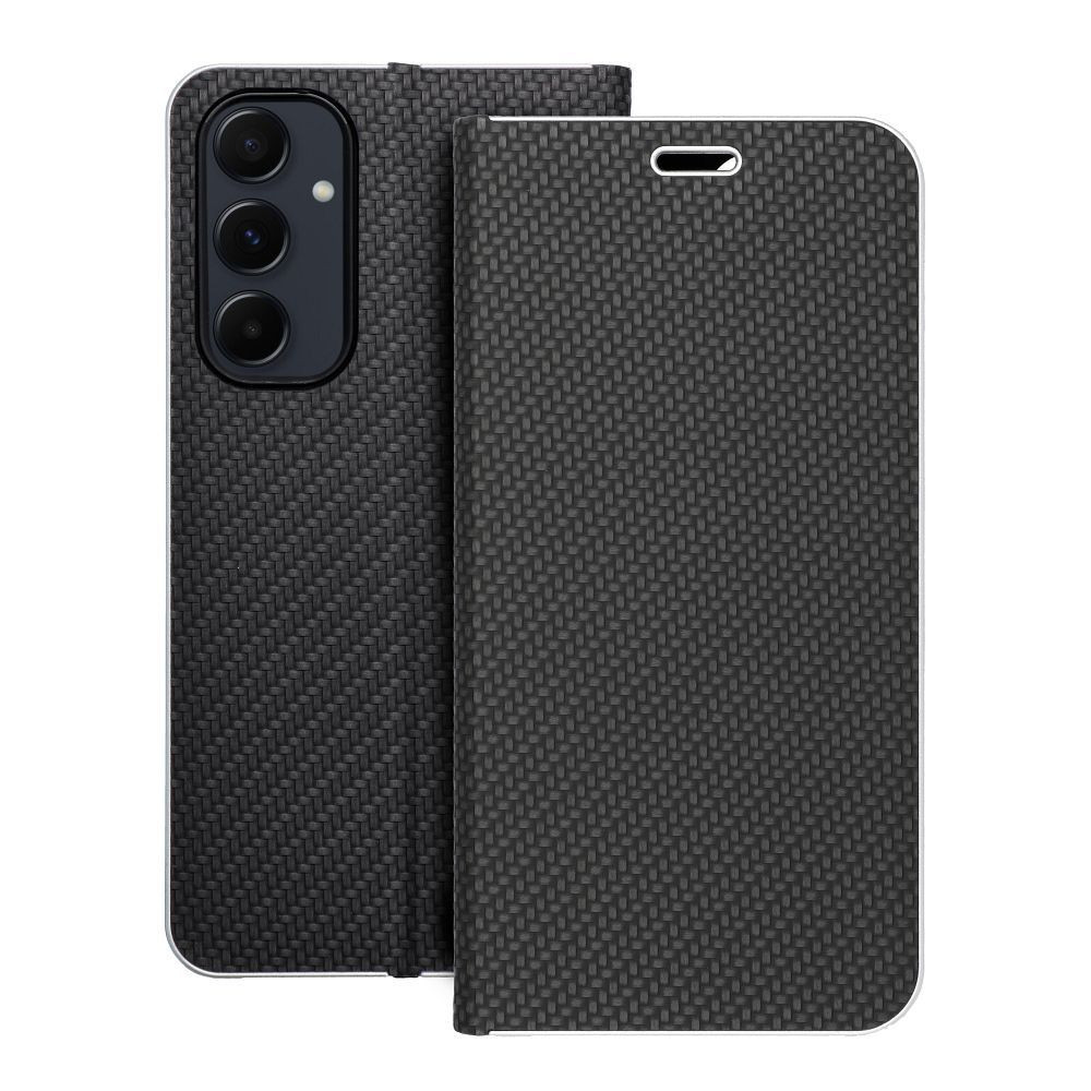 LUNA Book Carbon oldalra nyíló tok SAMSUNG A55 5G, fekete