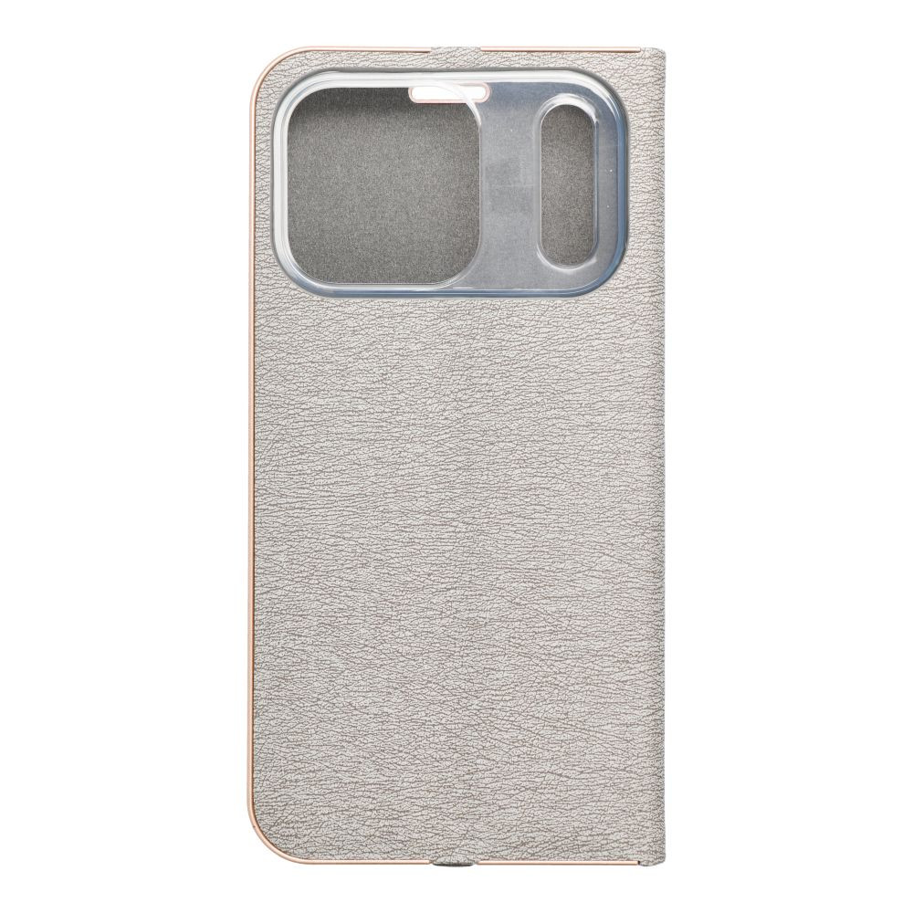 Elegáns tok fém kerettel a fokozott telefonvédelem érdekében. A vonzó textúra és a kellemes tapintású anyag stílusos tokot alkot, amely hangsúlyozza az eszköz modern kialakítását. A tok belső része és a tartórész puha velúr anyaga mindkét oldalról védi az eszközt a sérülésektől és karcolásoktól. A fogantyú elasztikus szilikonból készült és kivágásokkal rendelkezik. A széleken található alumínium keret megerősíti a tokot és még jobban védi az eszközt. A fém és az eredeti anyag kombinációja egyedi és modern összhatást eredményez, amely az eszközt stílusossá és elegánssá teszi. A tok egy kis zsebbel is rendelkezik, praktikus dokumentumok vagy bankjegyek tárolására. A tok vízszintes alappal rendelkezik, amely filmek vagy fotók nézésére alkalmas. Egy erős mágnes biztosítja a tok könnyű záródását és nyitását, és megakadályozza a véletlenszerű kinyílást.