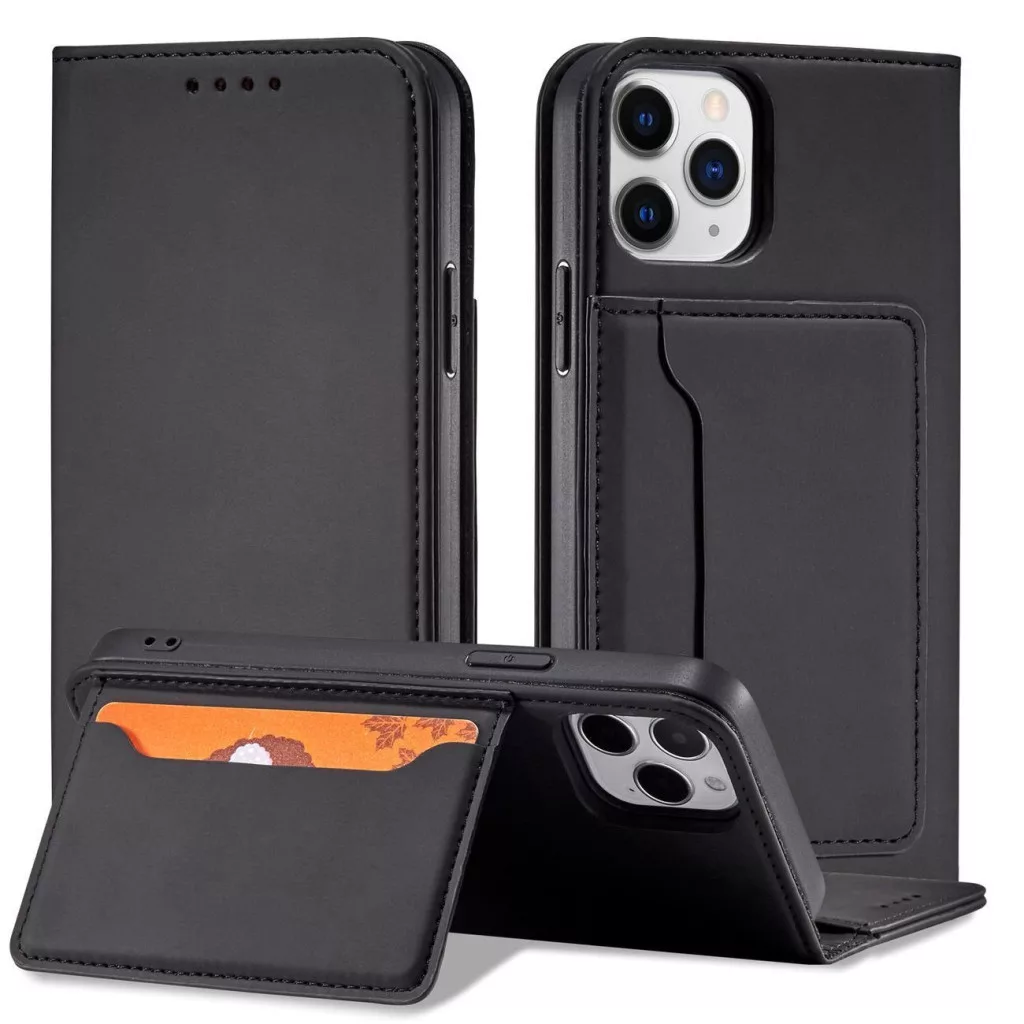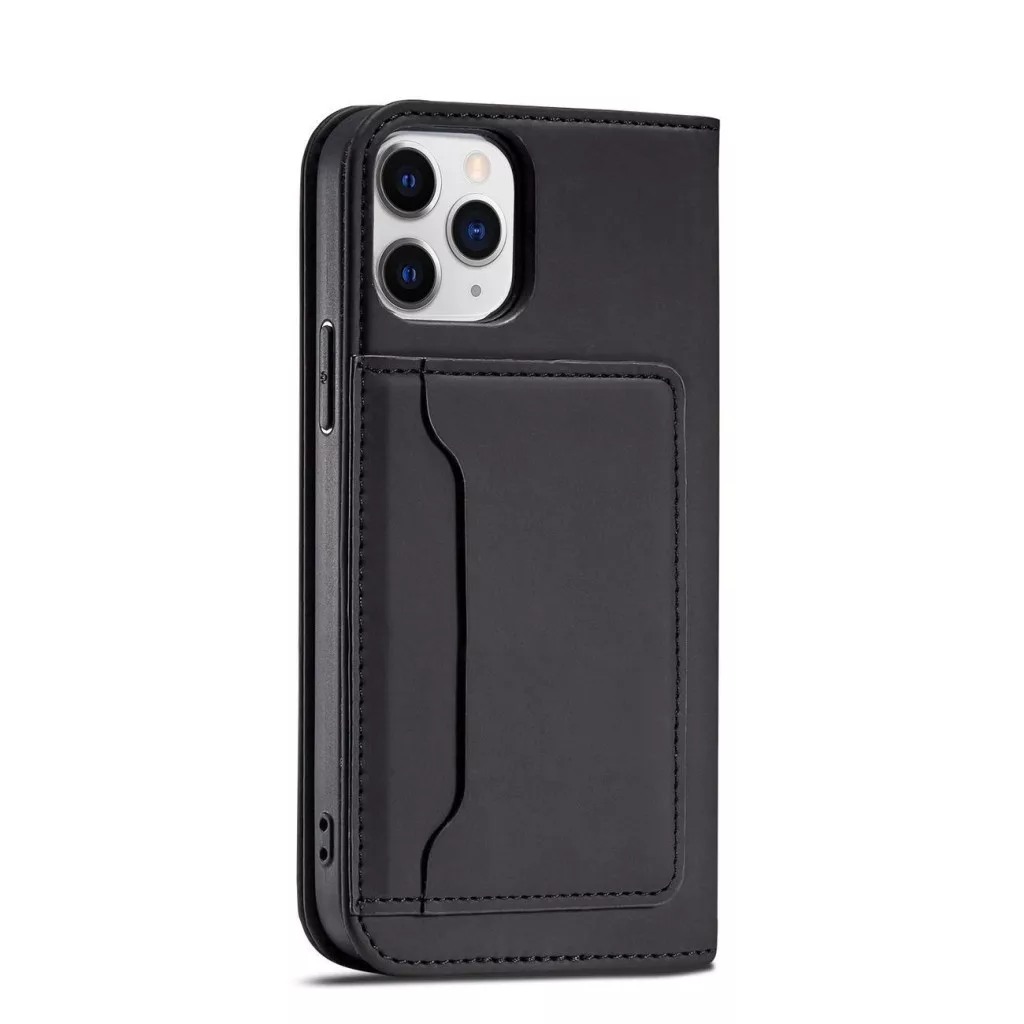 Magnet Case iPhone 12 oldalra nyíló tok, fekete