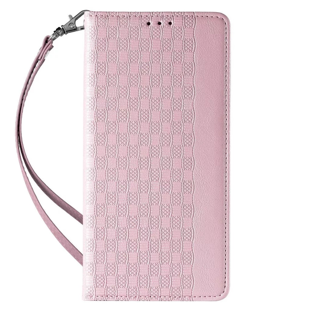 iPhone 14 Pro sorozat Magnet Strap Case felnyíló tok pénztárcával és állványfunkcióval, rózsaszín