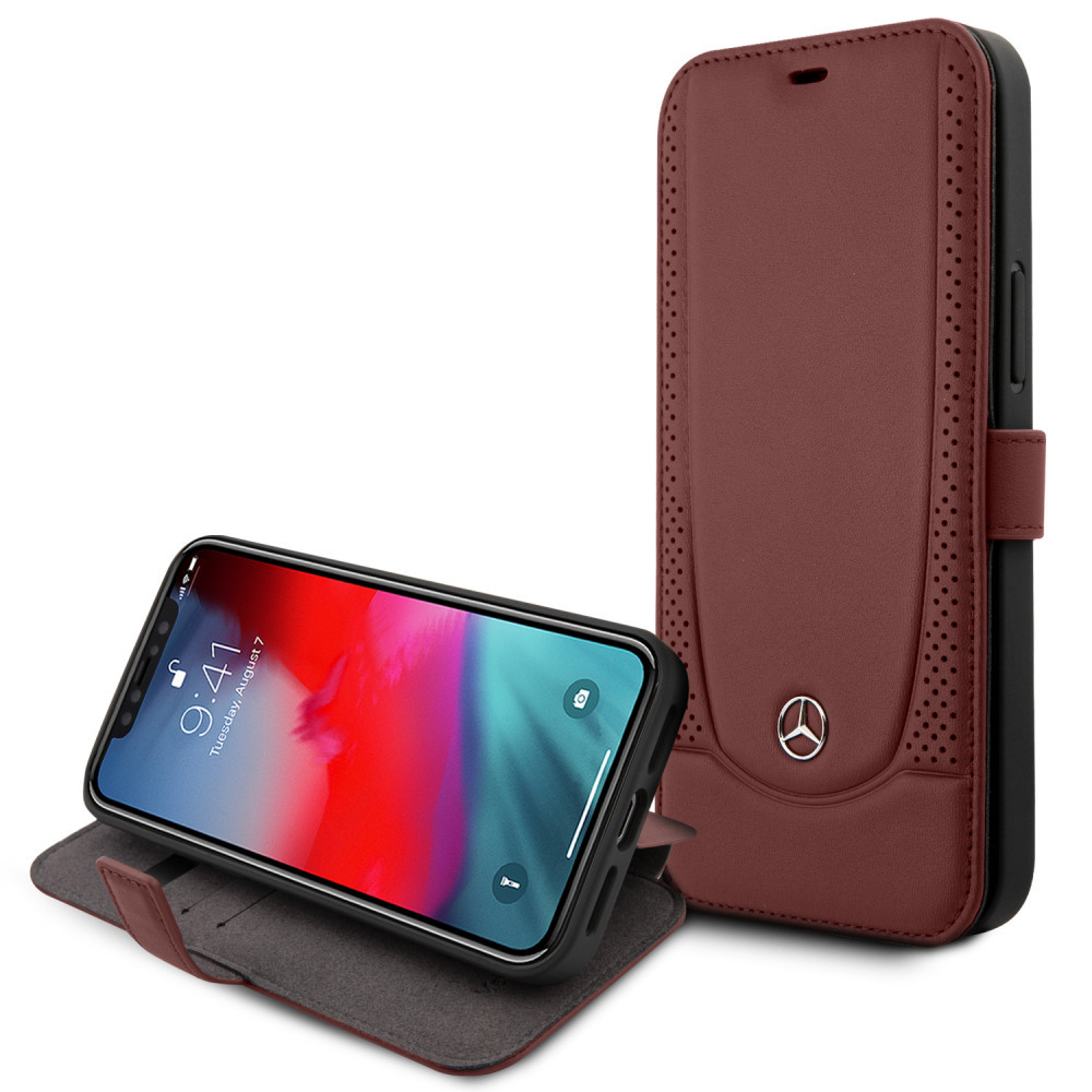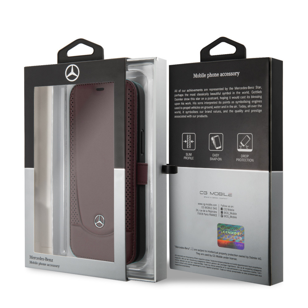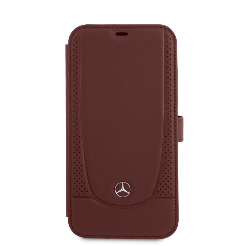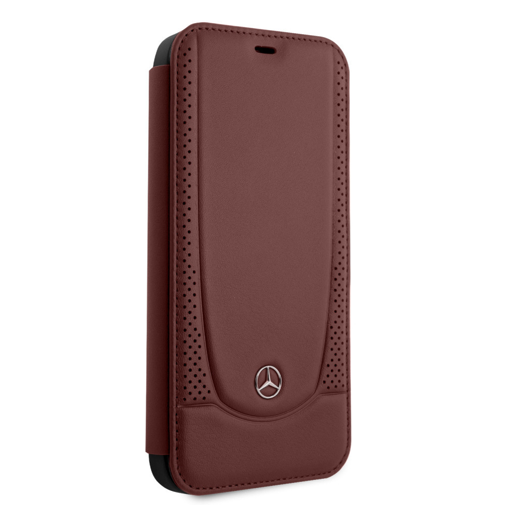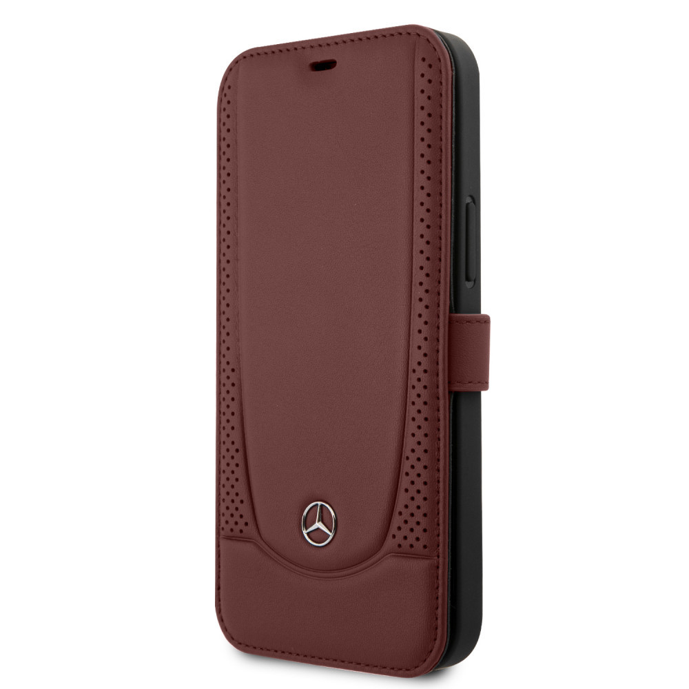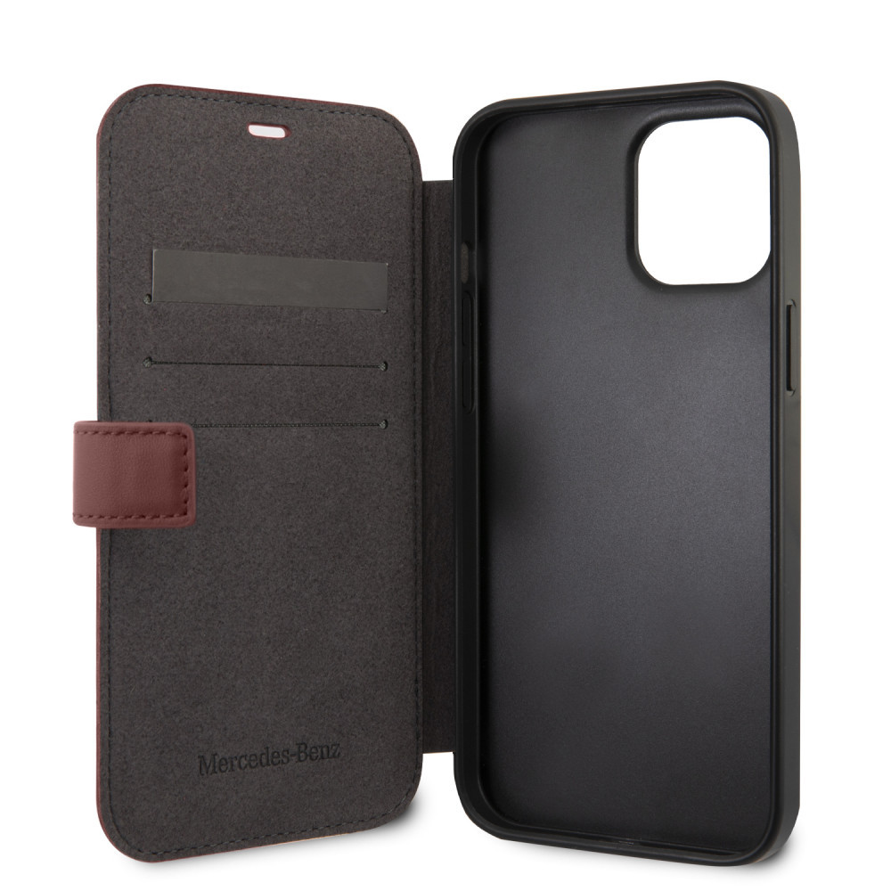 Mercedes-Benz iPhone 12 Pro Max Leather Urban (MEFLBKP12LARMRE) eredeti bőr oldalra nyíló tok, piros