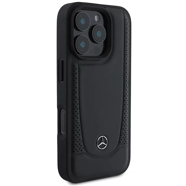 Mercedes-Benz iPhone 16 Pro Leather Urban (MEHCP16LARMBK) eredeti bőr, hátlap, tok, fekete