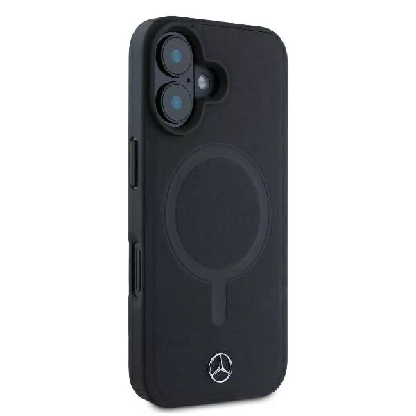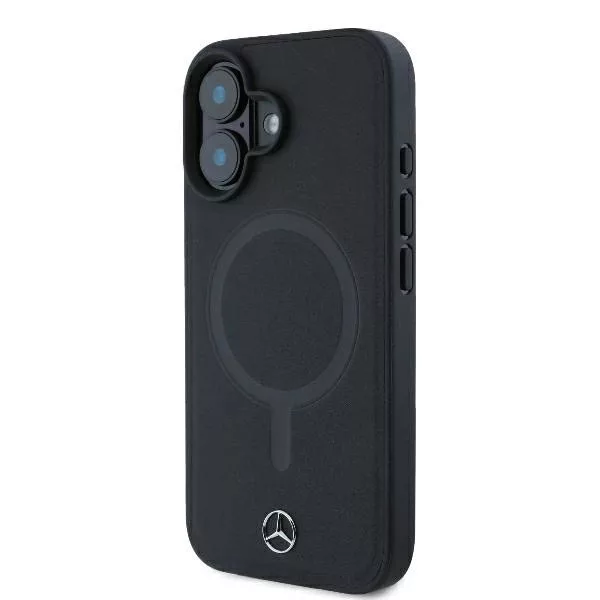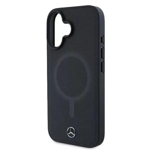 Smooth Leather MagSafe, A lenyűgöző esztétika, amely a Mercedes-Benz gépkocsik belső tervezésében is kitűnik, a legnagyobb gondossággal került át a Smooth Leather MagSafe tokra, amely kiváló minőségű környezetbarát műbőrből készült., Ez nem csupán a márkára jellemző részletekre való odafigyelés eredménye, hanem egyben tisztelgés a fenntartható szemlélet előtt is, az olyan, a környezetet kímélő anyagok kiválasztásával. Ideális választás minden MagSafe technológiával rendelkező készülék tulajdonosa számára., A luxus érintése, A Smooth Leather MagSafe tok egyediségét a rendkívül sima és puha környezetbarát műbőr emeli ki, amely páratlan használati kényelmet biztosít. A kiváló minőségű szintetikus bőr alkalmazása tartósan kiváló megjelenést garantál. A kollekció exkluzív jellegét a klasszikus fém Mercedes-Benz logó hangsúlyozza, amely egyben az eredetiség és a kifogástalan minőség szimbóluma., Tapasztald meg a vezeték nélküli töltés kényelmét és hatékonyságát, A tokban található mágneses gyűrű nemcsak biztosítja a kompatibilitást a MagSafe vezeték nélküli töltőkkel, lehetővé téve a gyors és kényelmes töltést, hanem stabil tartást is nyújt töltés közben, kiküszöbölve az esetleges elmozdulásokat vagy áramkimaradásokat. Ennek köszönhetően a tok nem csak esztétikus kiegészítő, hanem a mindennapi használat során hasznos, funkcionális eszköz is., A tok a Mercedes-Benz hivatalos licencével készült., Műszaki adatok, Típus, keménytok, Kollekció, Smooth Leather MagSafe, Anyag, TPU / környezetbarát műbőr, Szín, Fekete, Kompatibilitás, iPhone 16 Plus 6.7"