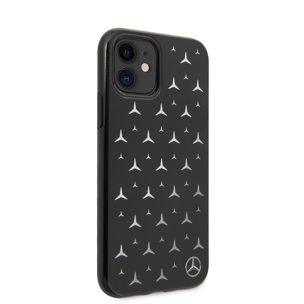 Mercedes iPhone 11 Silver Stars Pattern (MEHCN61ESPBK) hátlap, tok, fekete