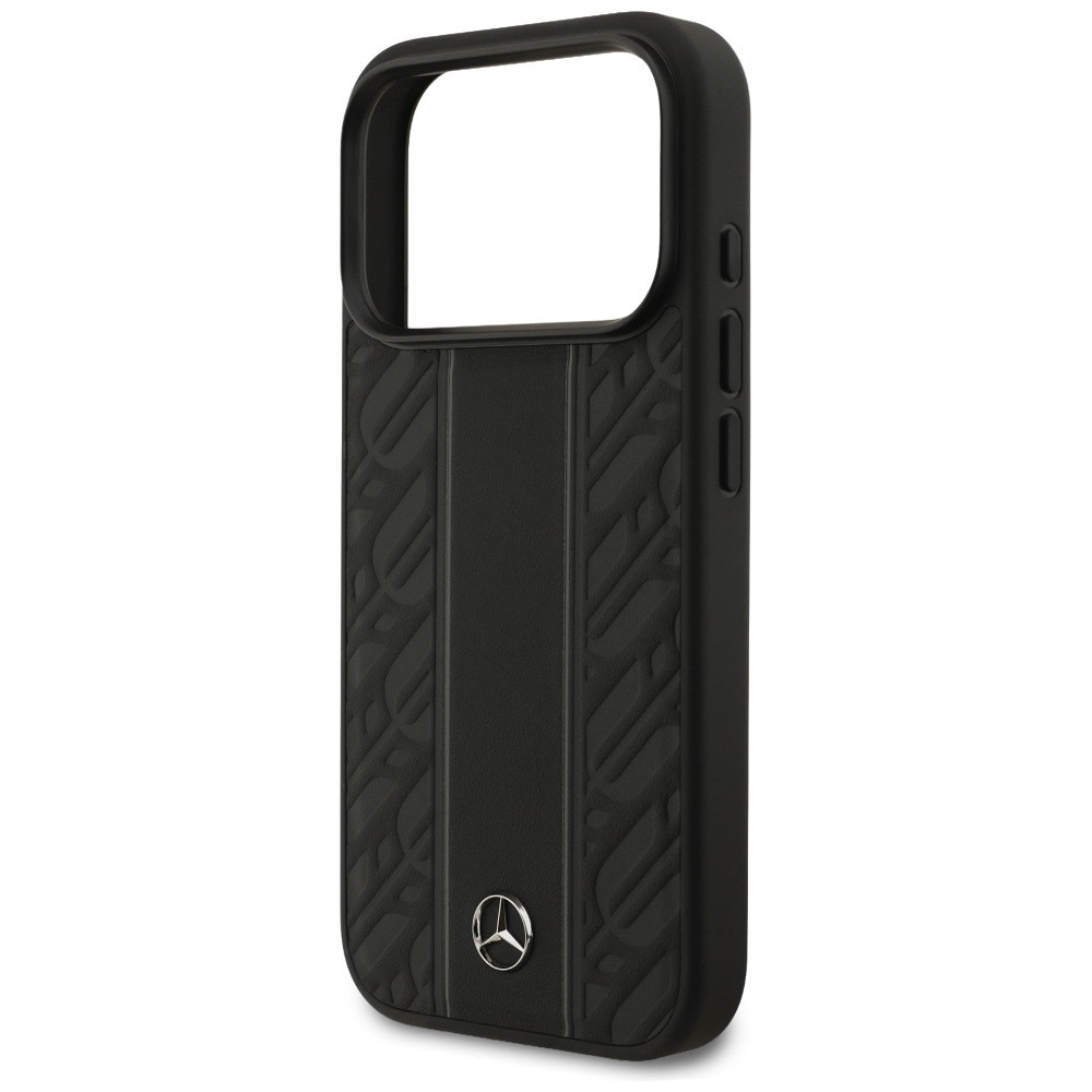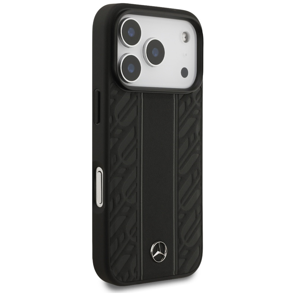 A hátlapot díszíti egy jellegzetes gumiabroncs-minta és egy fém Mercedes-Benz logó, amelyek kiemelik a tok elegáns és sportos jellegét.