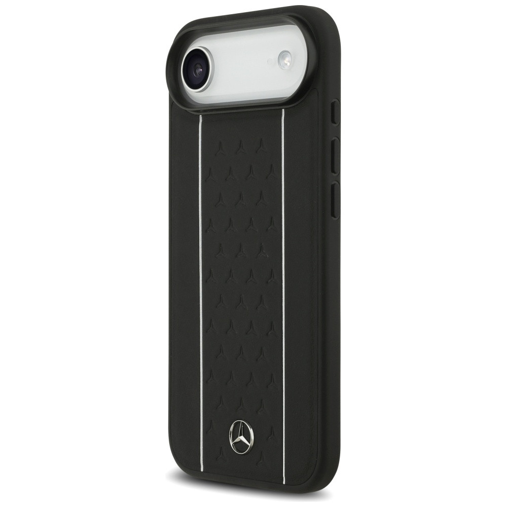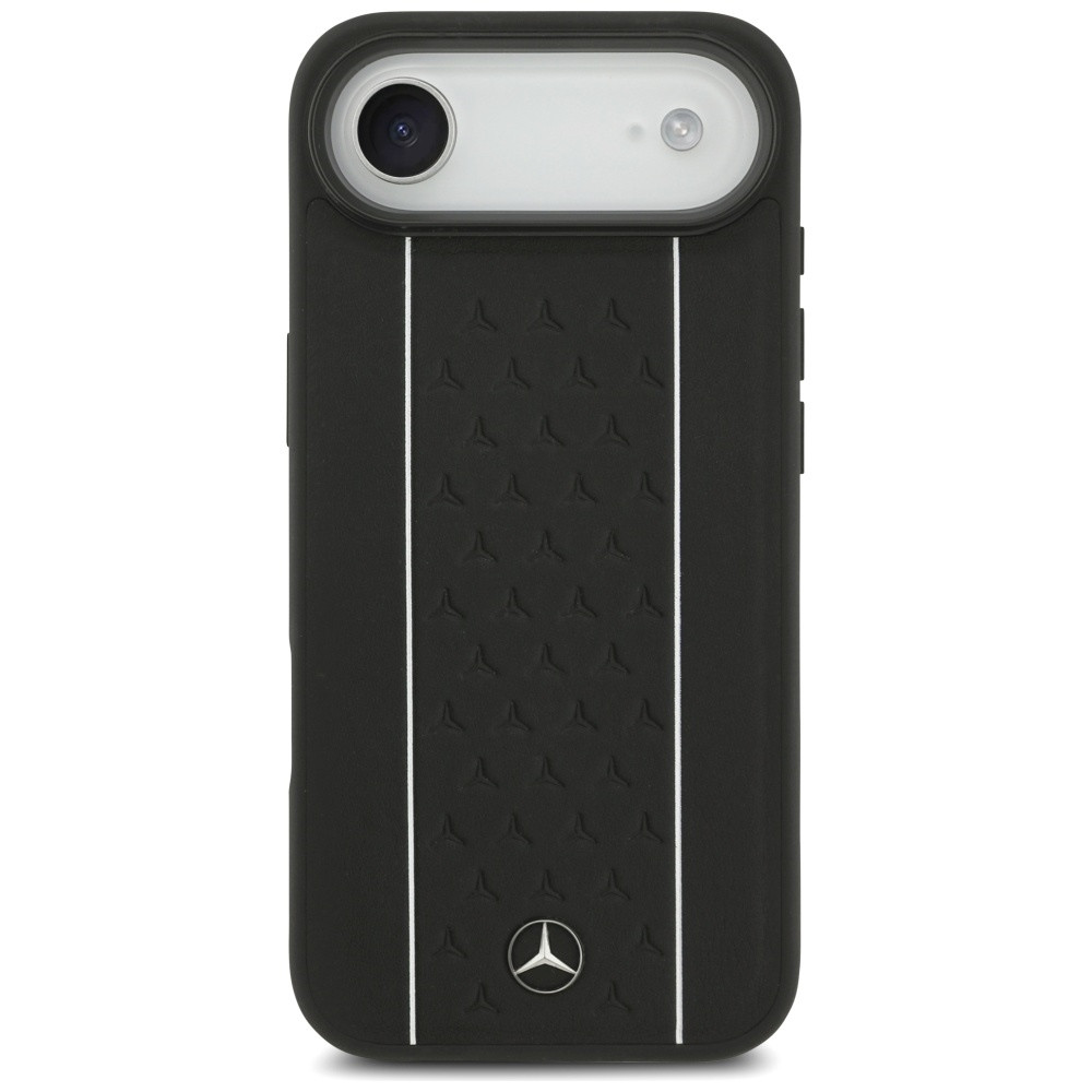 Mercedes Leather Star Pattern Stripes MagSafe iPhone 17 Air tok, fekete