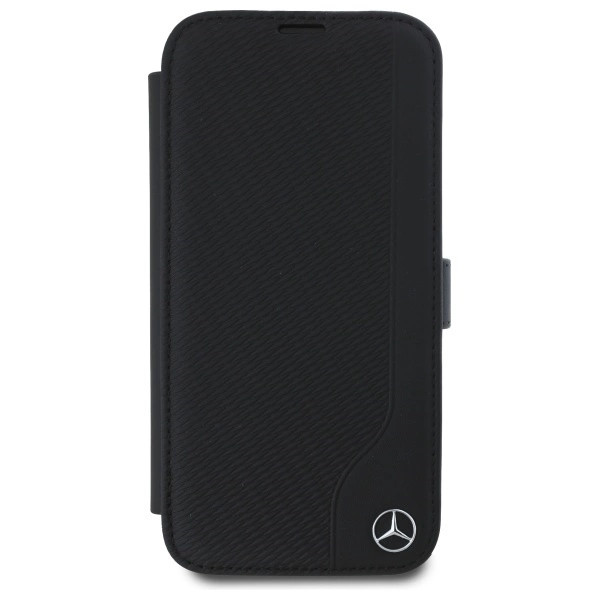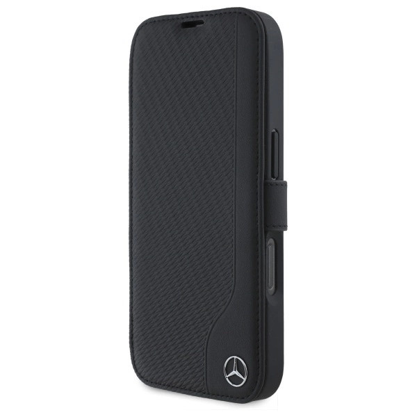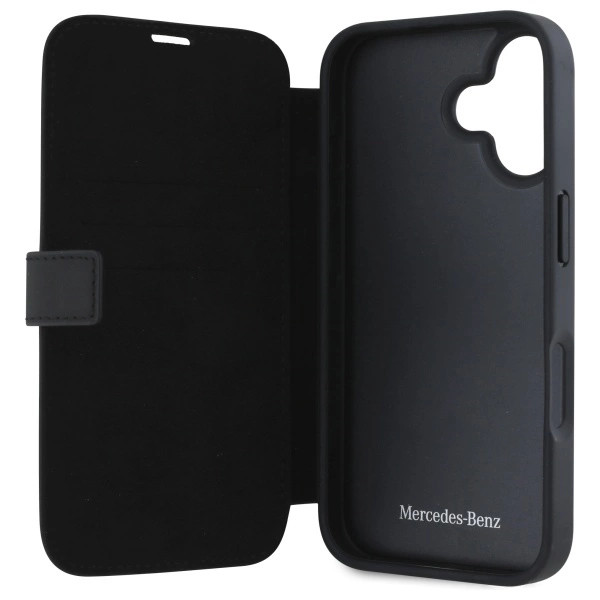 Mercedes MEBKP16S23RBGVK iPhone 16 6.1", tok, fekete oldalra nyíló tok Leather Wood Imitation