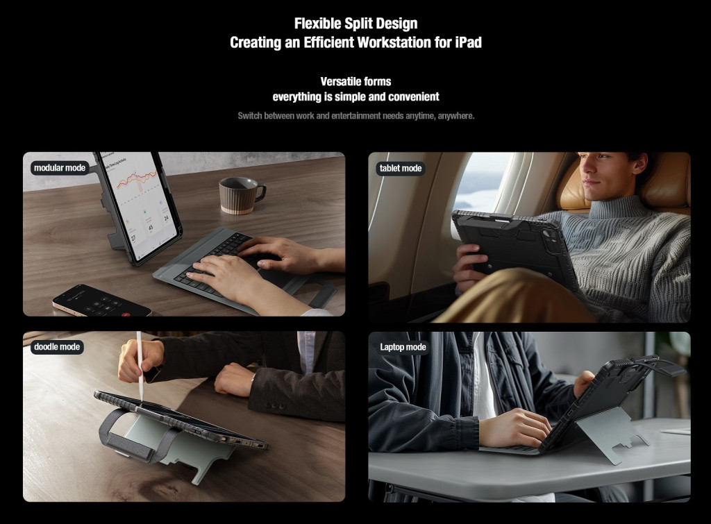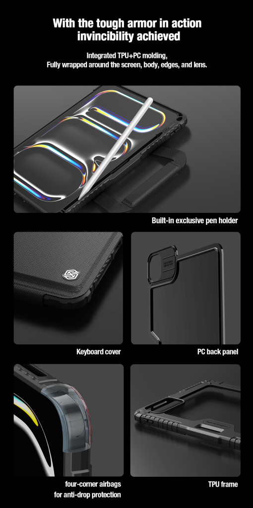 Nillkin Bumper GO Keyboard Case iPad Pro 11 (2024) tok, háttérvilágításos változat, fekete