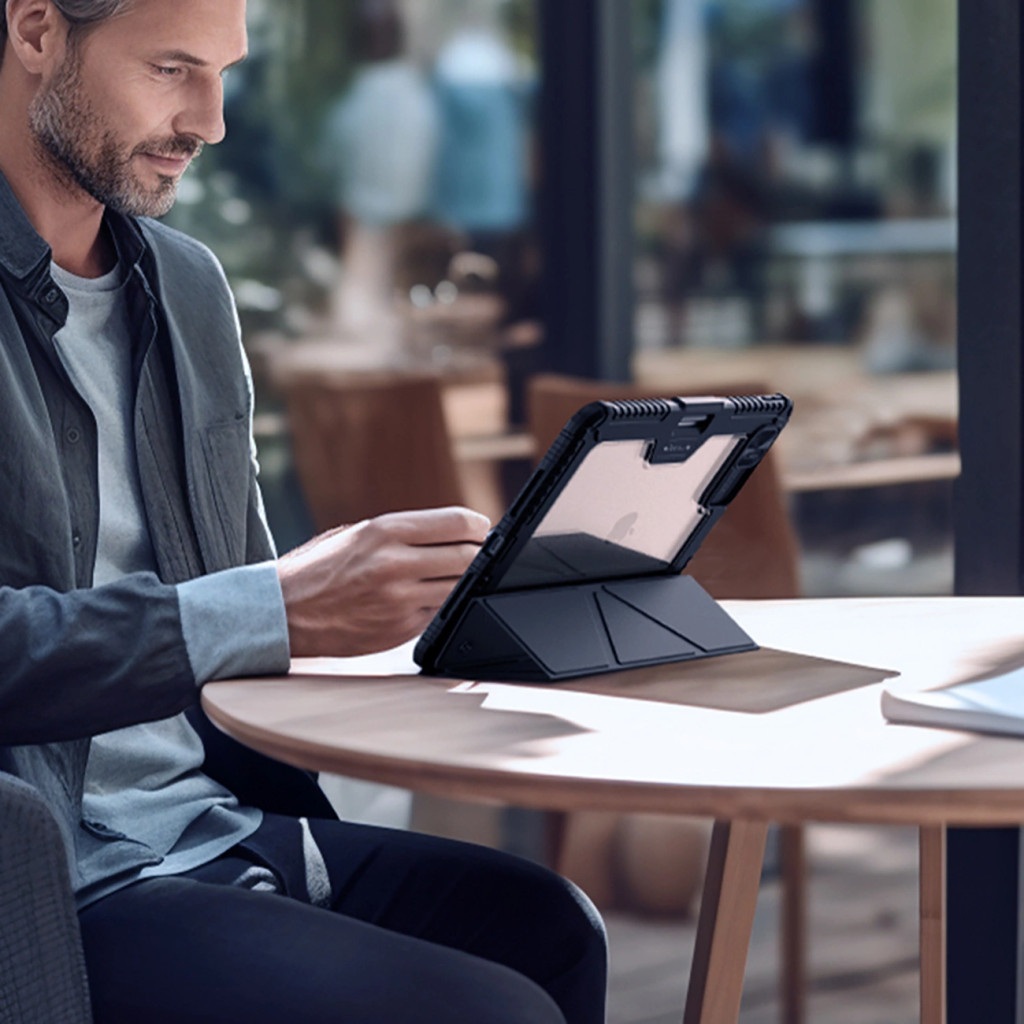 Nillkin Bumper Leather Case iPad Air 13 (2024) ütésálló, oldalra nyíló bőr tok, fekete