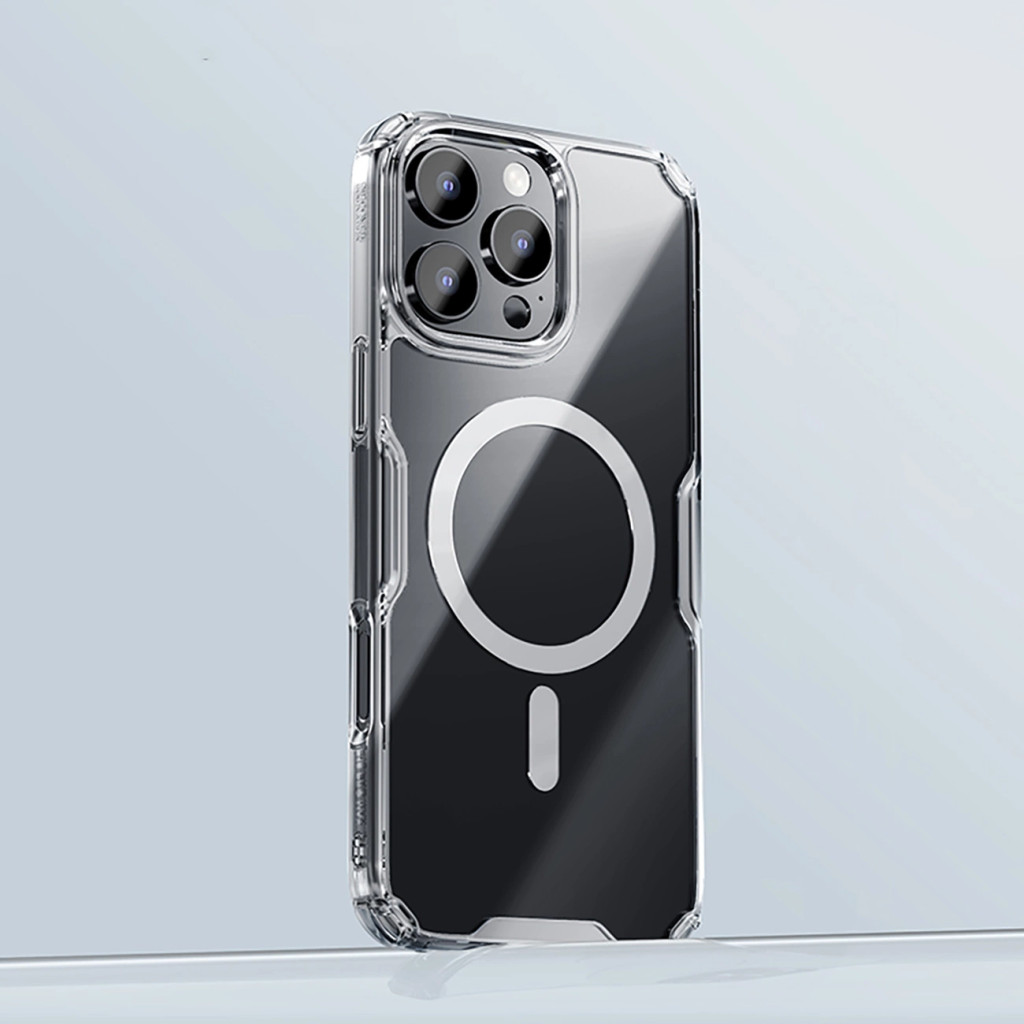 Nillkin Nature Pro Magnetic Case MagSafe-kel iPhone 16-hoz - átlátszó és fehér