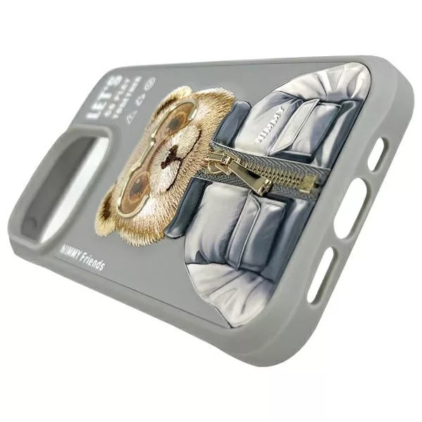Nimmy Case iPhone 15 Pro 6.1" szary/tok, szürke Cool&Cute 2.0 Bear tok, szürke