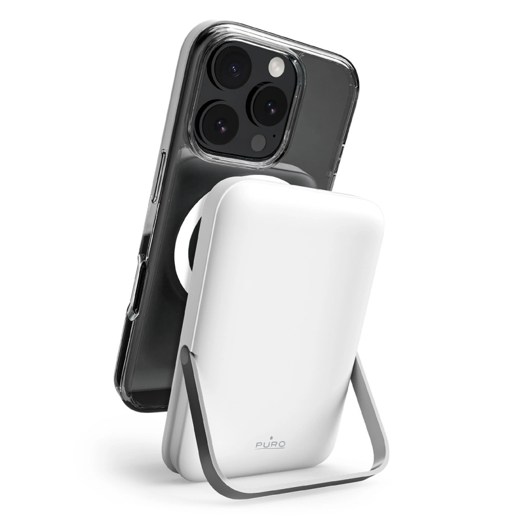 Puro 10000mAh MagSafe vezeték nélküli powerbank alumínium állvánnyal - fehér