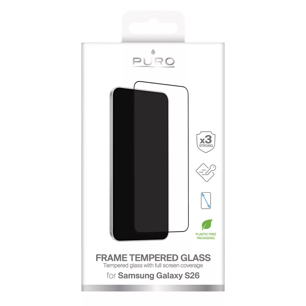Puro Frame edzett üveg a Samsung Galaxy S26-hoz - fekete kerettel