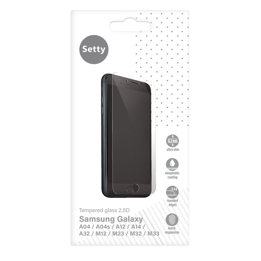 Setty Samsung Galaxy A04/A04s/A12/A14 4G/A14 5G/A32 4G kijelzővédő edzett üvegfólia (tempered glass) 9H keménységű (nem teljes kijelzős 2.5D sík üvegfólia), átlátszó