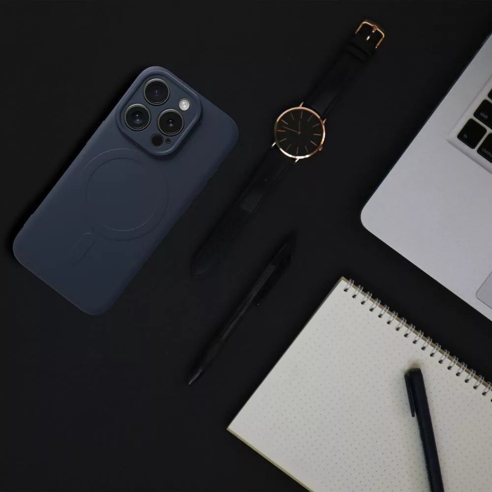 SILICONE MAG COVER tok, MagSafe iPhone 15 Pro, kék, sötétszürke