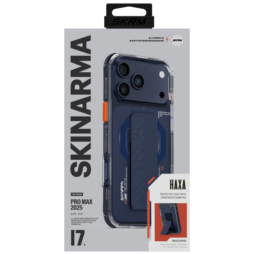 Skinarma Haxa iPhone 17 Pro Max Magnetic Charging + Grip Stand tok, kék