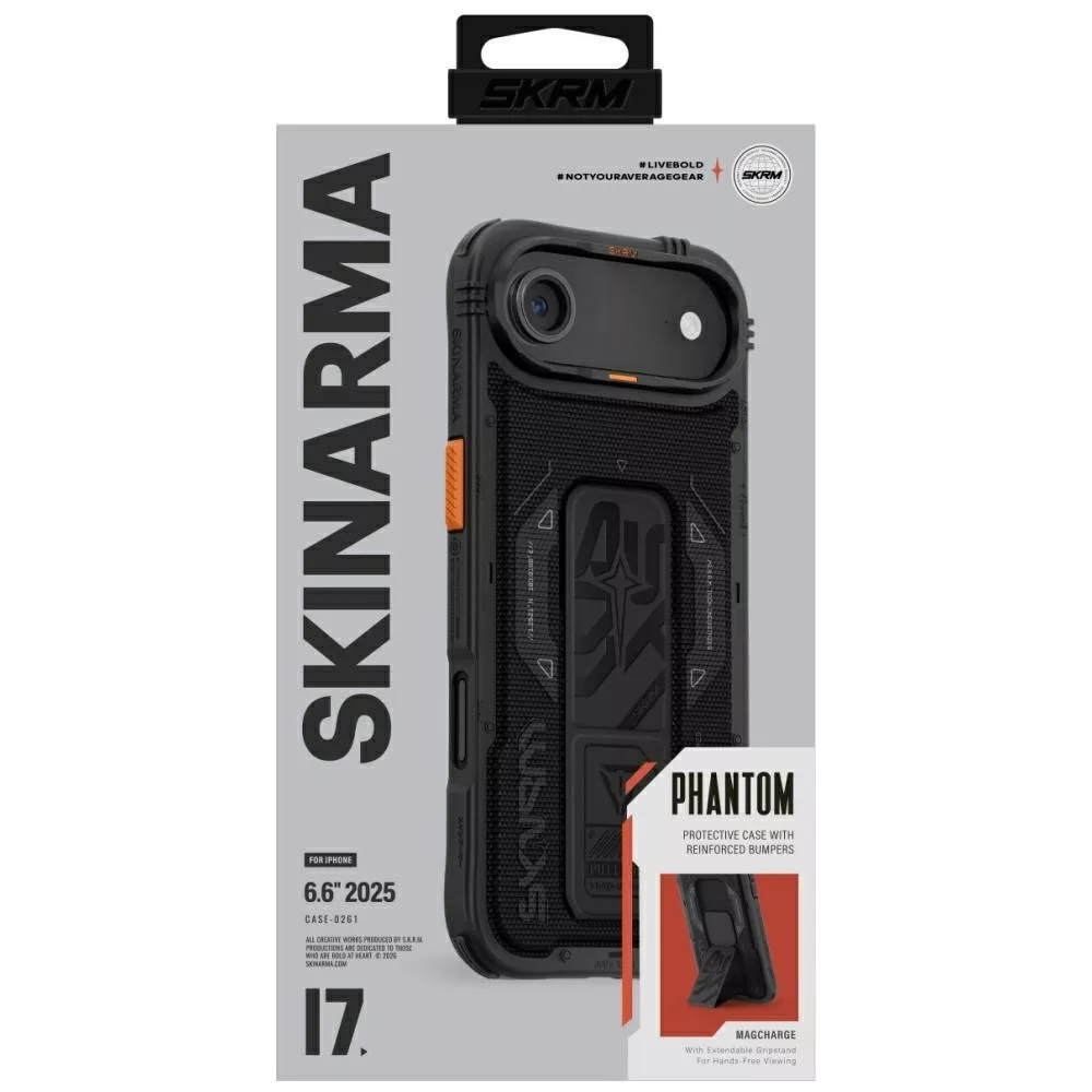 Skinarma Phantom Case iPhone 17 Air Magnetic Charging + Grip Stand tok, fekete