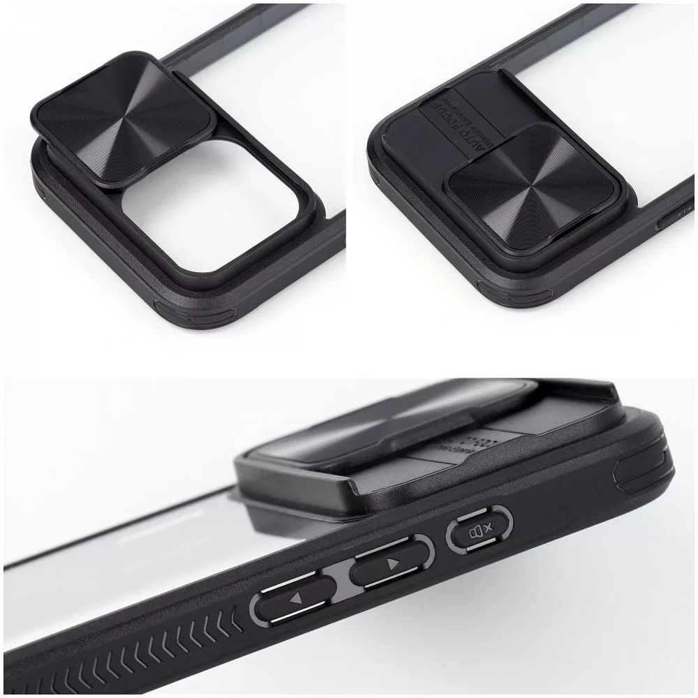 SLIDER kameravédős, ütésálló tok iPhone 15 Plus, fekete