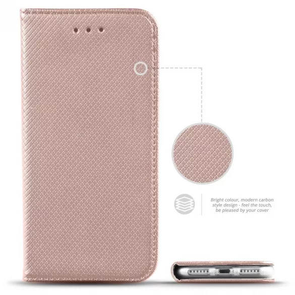 Smart Magnet iPhone 13 Mini 5,4" oldalra nyíló tok, rozé arany
