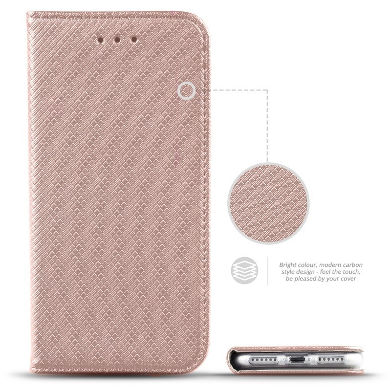Smart Magnet iPhone 13 Pro Max oldalra nyíló tok, rozé arany