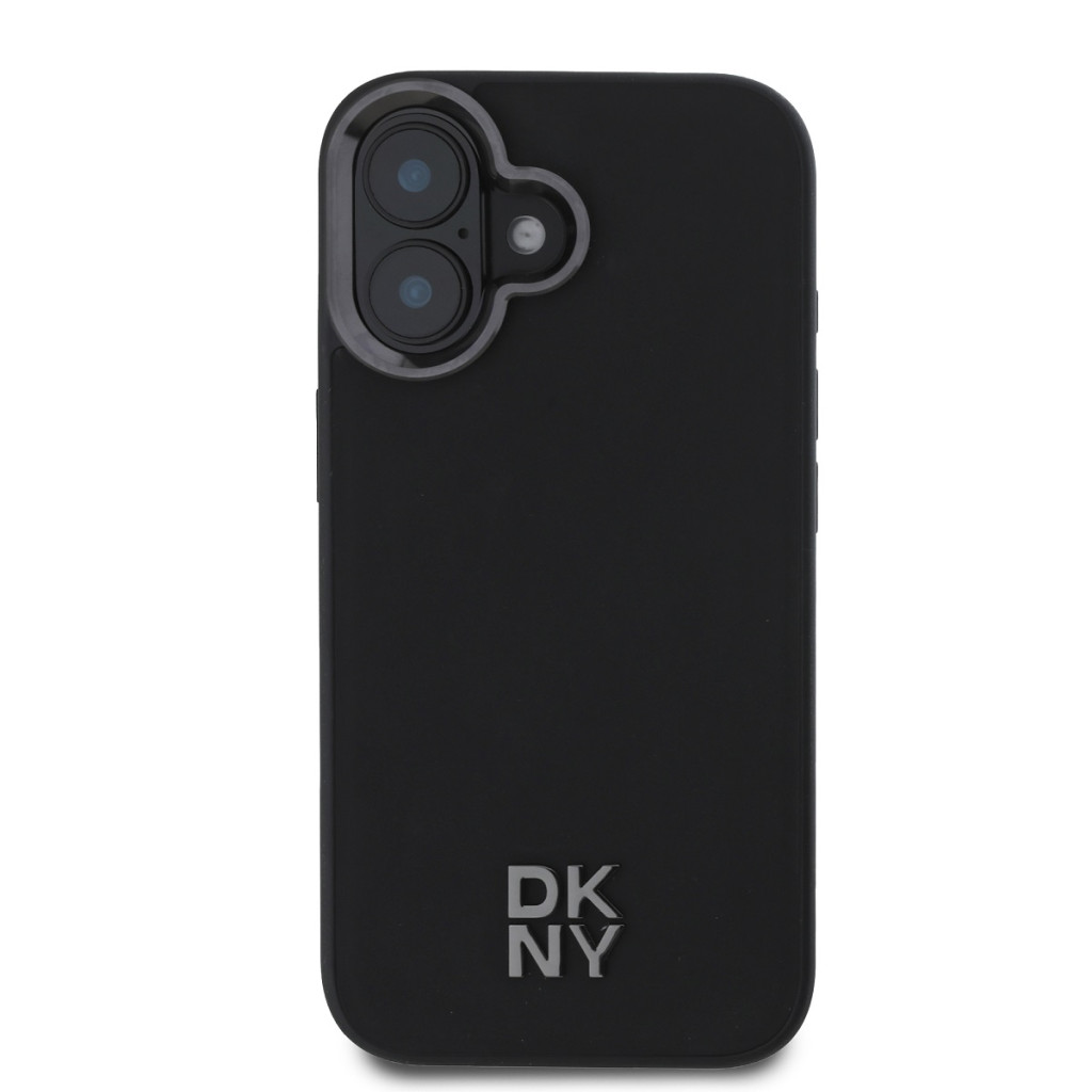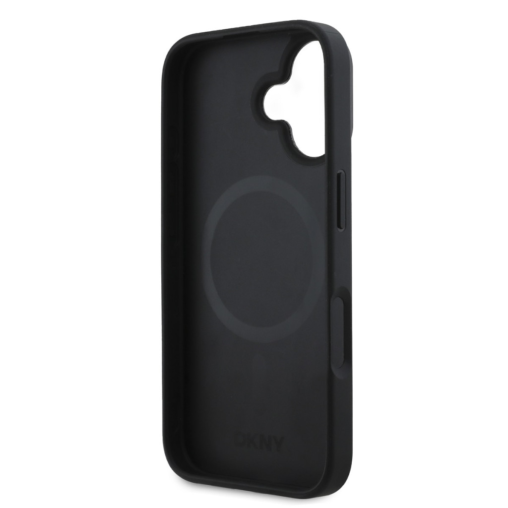 DKNY iPhone 16 PU Leather Stack Logo Magsafe kompatibilis DKHMP16SPSMCSLK hátlap, tok, fekete