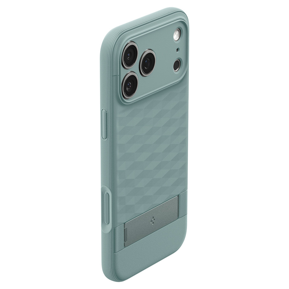 A Spigen Parallax "S" MagSafe egy funkcionális tok, amely a modern dizájnt gyakorlati megoldásokkal ötvözi. Rugalmas TPU-ból készült, hatékonyan védi a készüléket a karcolásoktól és leesésektől, miközben könnyű és kényelmes a mindennapi használat során. A beépített kihajtható állvány lehetővé teszi a kényelmes filmnézést vagy videóhívást álló és fekvő nézetben egyaránt. A tok hátoldalát geometrikus mintázat díszíti, amely nem csak stílusos megjelenést kölcsönöz, de csúszásgátló textúrája révén javítja a fogást. A kiálló élek védik a képernyőt és a kamerát, a teljes MagSafe kompatibilitás pedig gyors töltést és mágneses kiegészítők támogatását biztosítja.