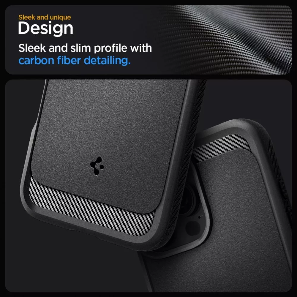 Spigen Rugged Armor Magsafe egy különleges tok, amely ötvözi a modern dizájnt és a készülék kiváló védelmét. Tartós és rugalmas, kopásálló TPU anyagból készült, és további fényes Carbon Fiber bevonattal rendelkezik, amely elegáns karbon textúrát hoz létre.