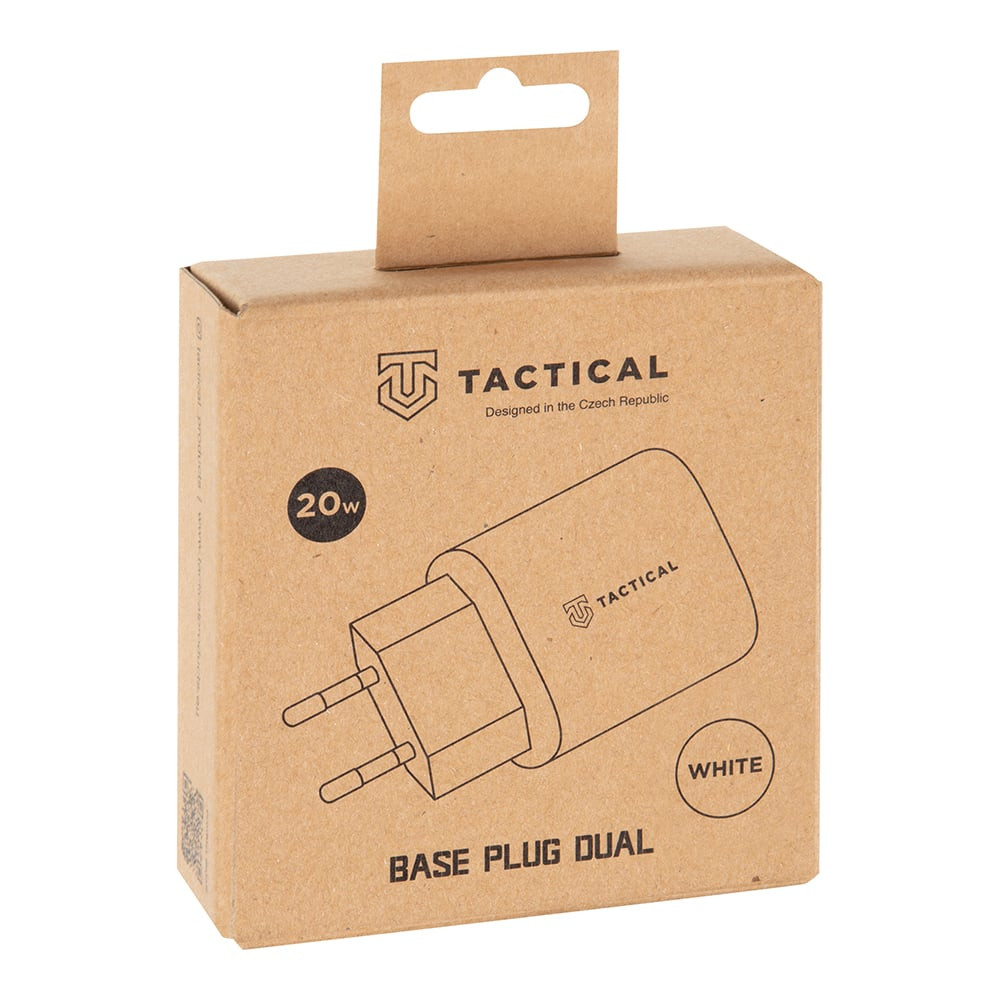 Tactical Base Plug Dual USB-A+USB-C hálózati töltő adapter, gyorstöltés, 20W, QC3.0, PD, 3A, fehér