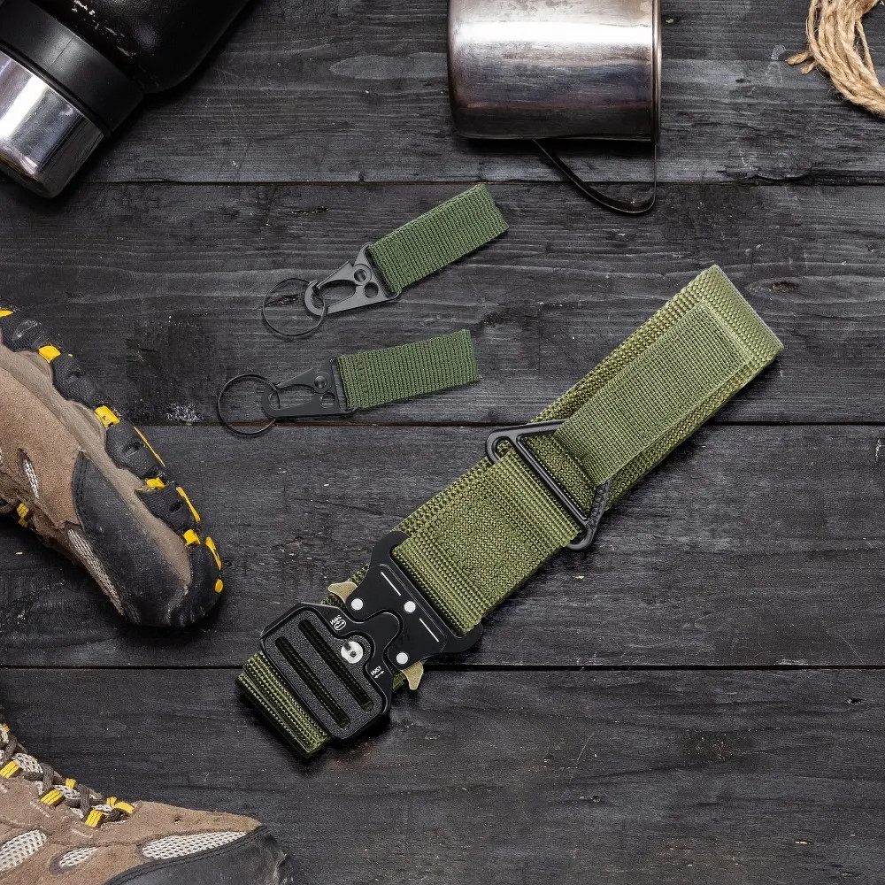 Tactical öv fém csatt + fogantyúval, tok rögzítéshez, zöld