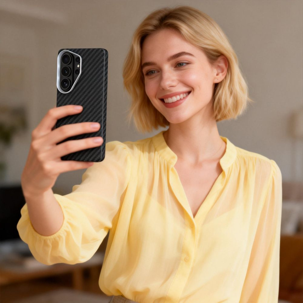 Az elegáns keret a kamera lencséje körül nem csak vizuálisan emelkedik ki, hanem további védelmi réteget is biztosít a fotómodul számára. A gombok a kerethez illő színben harmonizálnak vele, egységes és esztétikus megjelenést alkotva. A dizájnelemek mind összhangban vannak egymással, olyan tokot létrehozva, amely ötvözi a stílust és a funkcionalitást.