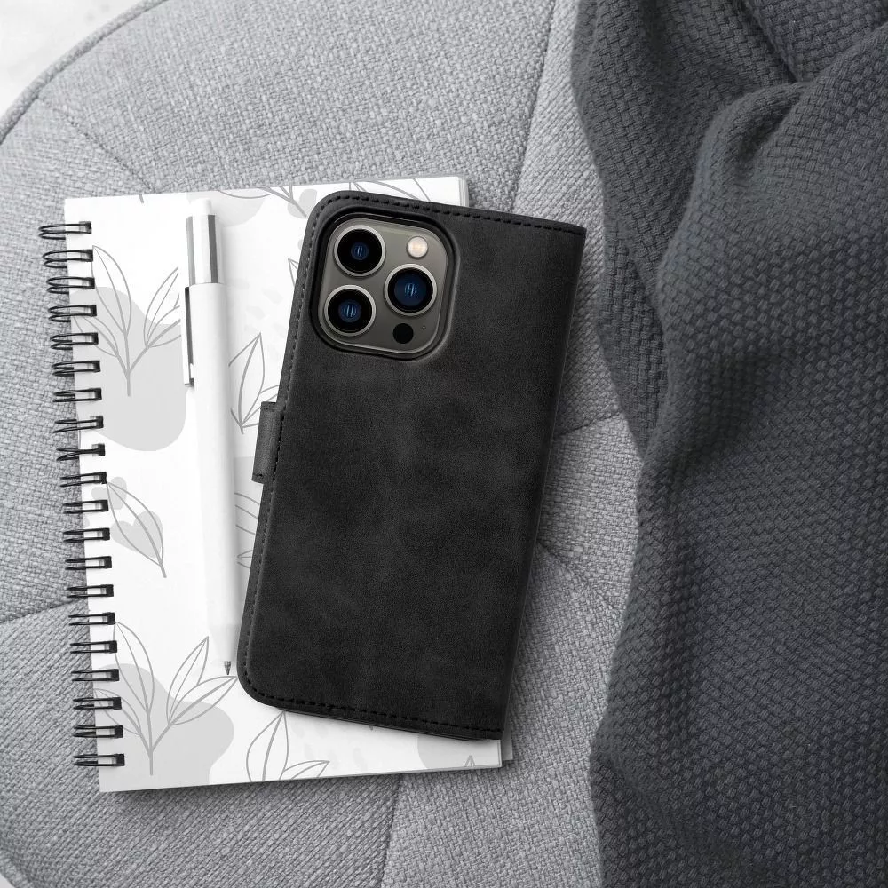 TENDER Book Case oldalra nyíló tok iPhone 13 MINI, fekete