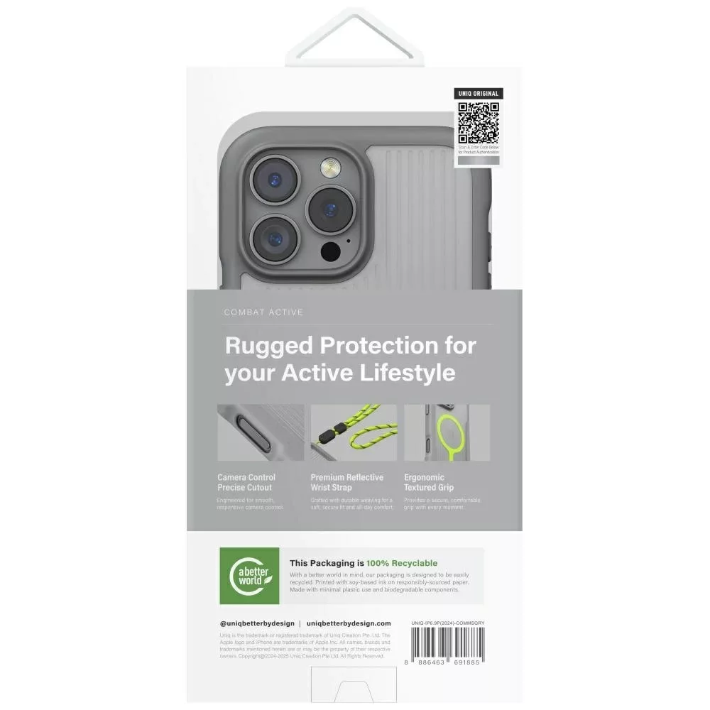 Uniq Combat Active Magclick Charging Case iPhone 16 Pro Max tok, szürke