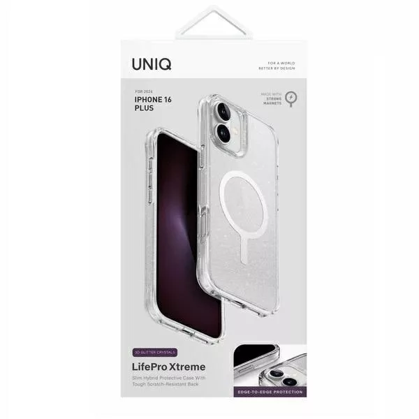 UNIQ LifePro Xtreme MagSafe Glitter tok iPhone 16 Plus 6.7" Magclick, átlátszó