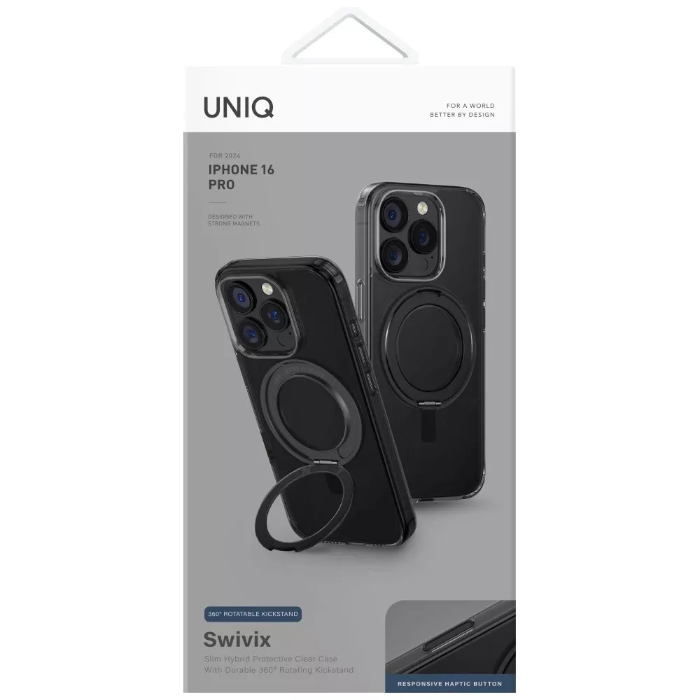 Uniq Swivix 360 Rotating Kickstand Case iPhone 16 Pro tok, fekete