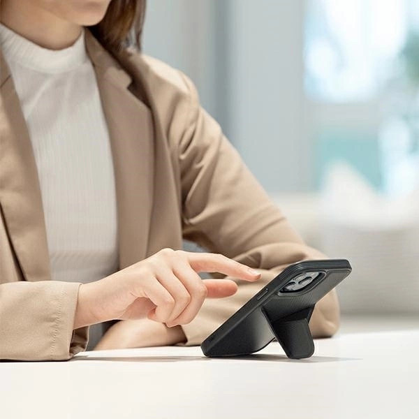 Uniq Transforma - iPhone készülékének teljes funkcionalitását biztosítja a beépített, mágneses állványnak köszönhetően, amely lehetővé teszi a portré vagy landscape módban történő elhelyezést.