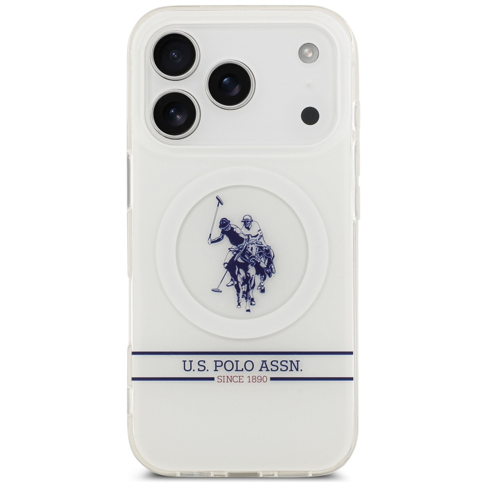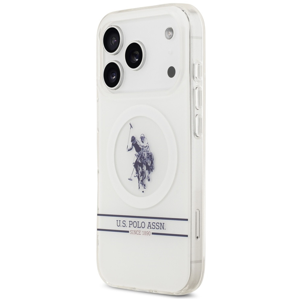 US Polo DH and Bottom Stripe Logo MagSafe Case iPhone 17 Pro tok, fehér