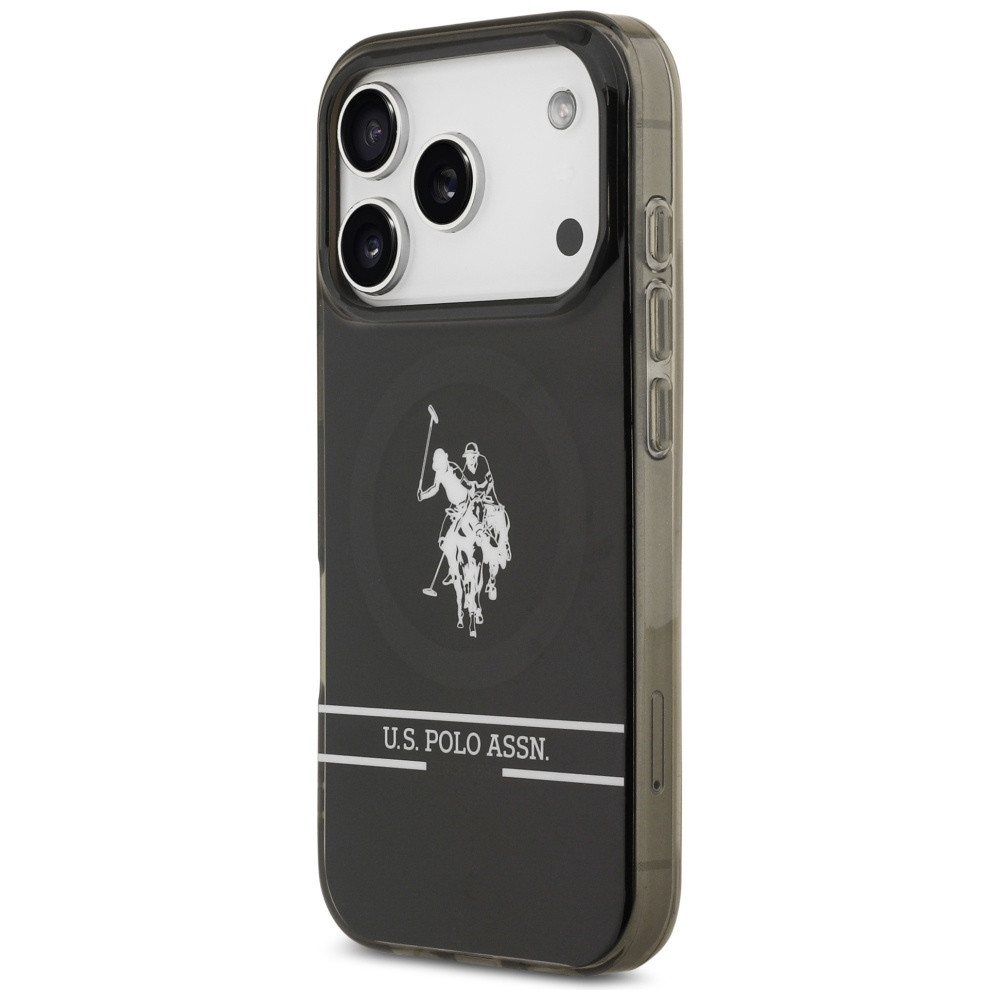 US Polo DH and Bottom Stripe Logo MagSafe Case iPhone 17 Pro tok, fekete