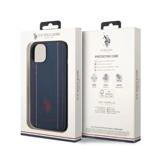 US Polo hátlap, tok USHCP14MPFAV iPhone 14 Plus 6.7" blue Leather Stitch, sötétkék