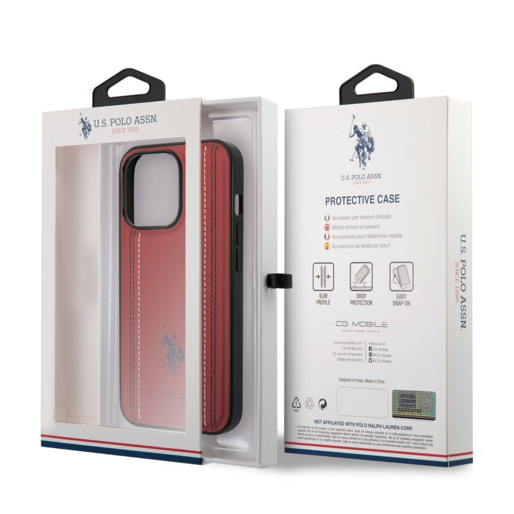 U.S. Polo iPhone 14 Pro Max Leather Stitched Lines hátlap, tok, piros