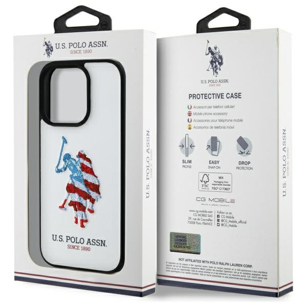 US Polo USHCP15XPUSH iPhone 15 Pro Max 6,7" tok, fehér Leather Big DH American Flag
