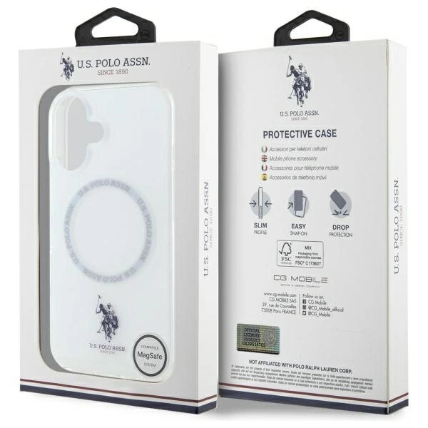 US Polo USHMP16SHOCLDPW iPhone 16 6.1" tok, fehér IML Ring MagSafe